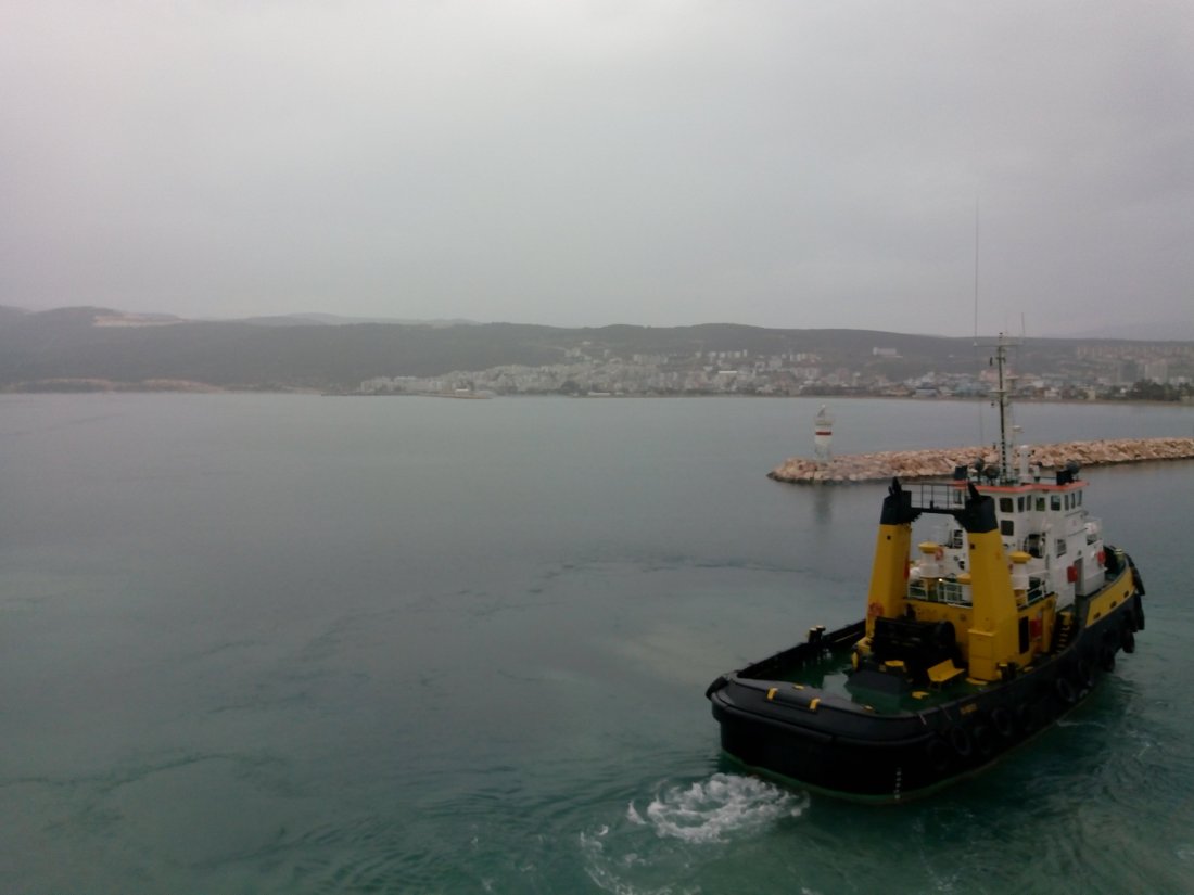 I woke up as the ferry was nearing Turkey. I went outside and found the sky to be overcast with a bit of light rain.