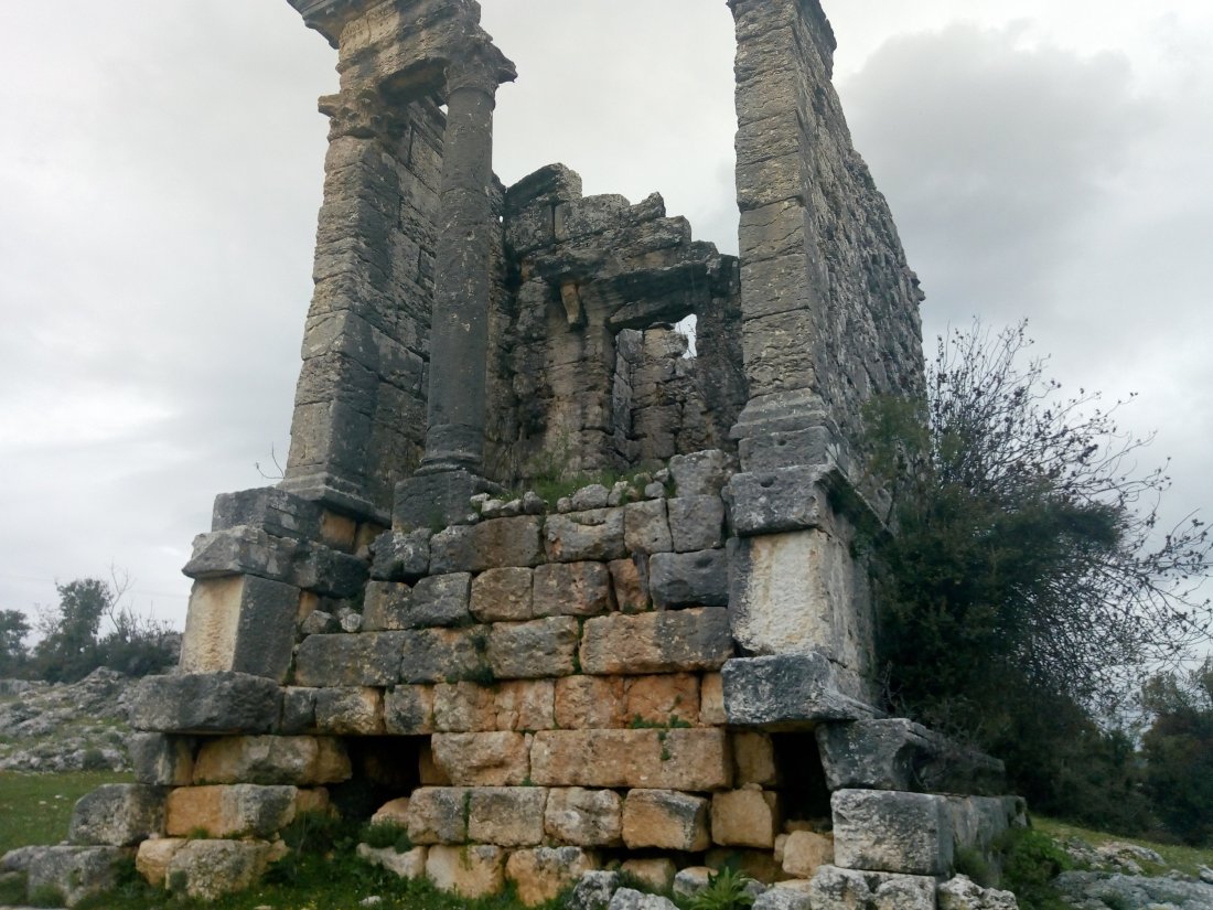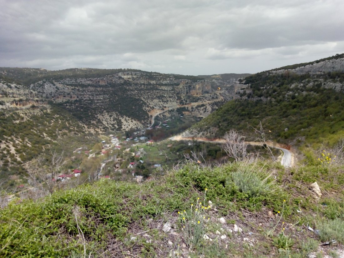 After a couple of hours I turned off onto a smaller road. On this second section the road began reasonably flat, passing through farmland. Just past the hamlet of Canbazli I spotted a ruined structure and went over to investigate. It seemed to be a ruin of a tower – possibly a watchtower? There were also several man-made caves in the surrounding cliffs. There was no signage here but according to Wikipedia this was an important village in the early Byzantine era. Perhaps these were used in defence against the early Islamic expansion, which saw frequent warfare across this mountain range.