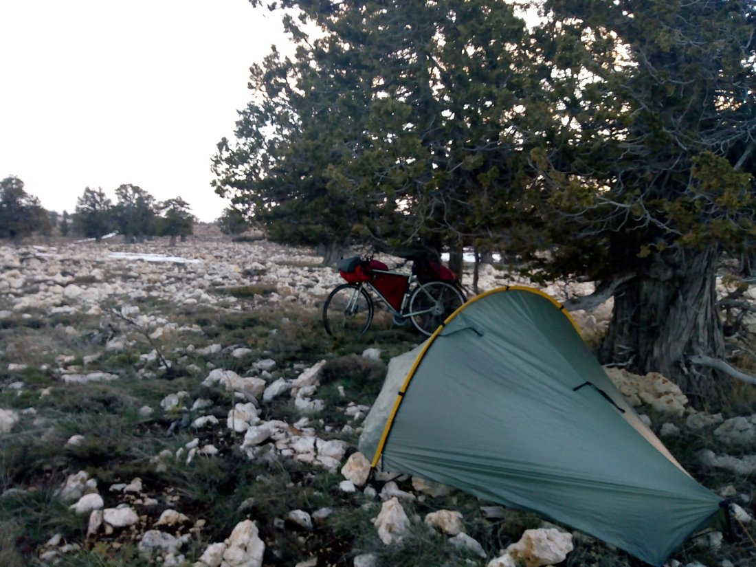 As I climbed, the amount of snow increased. I had wanted to get to the top of the pass today but was getting concerned that I would be unable to find a dry place to camp. I therefore stopped at around 2000m and followed a track away from the road before setting up my tent and going to sleep.