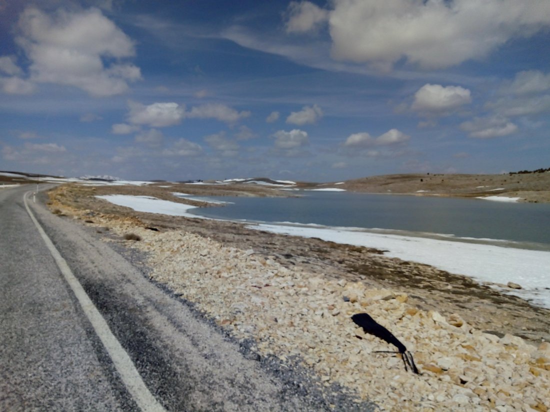 These rolling hills continued to trend gradually upwards before joining a slightly larger road in the village of Aydinlar at an altitude of around 1300m. This marked the beginning of what I considered the third phase of the day, a return to consistently climbing. The road rose steadily ahead of me. The landscape changed, villages ceased and past about 1800m I started to see patches of snow.
