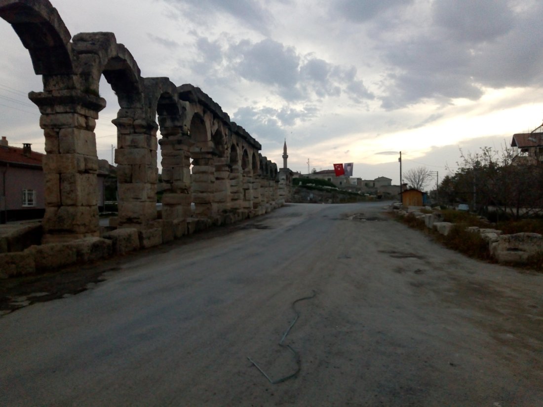 At the end of the day I reached the village of Kemerhisar and topped up on water for the night. The village is set on the ancient Roman town of Tyana, and I cycled out alongside a Roman aqueduct.
