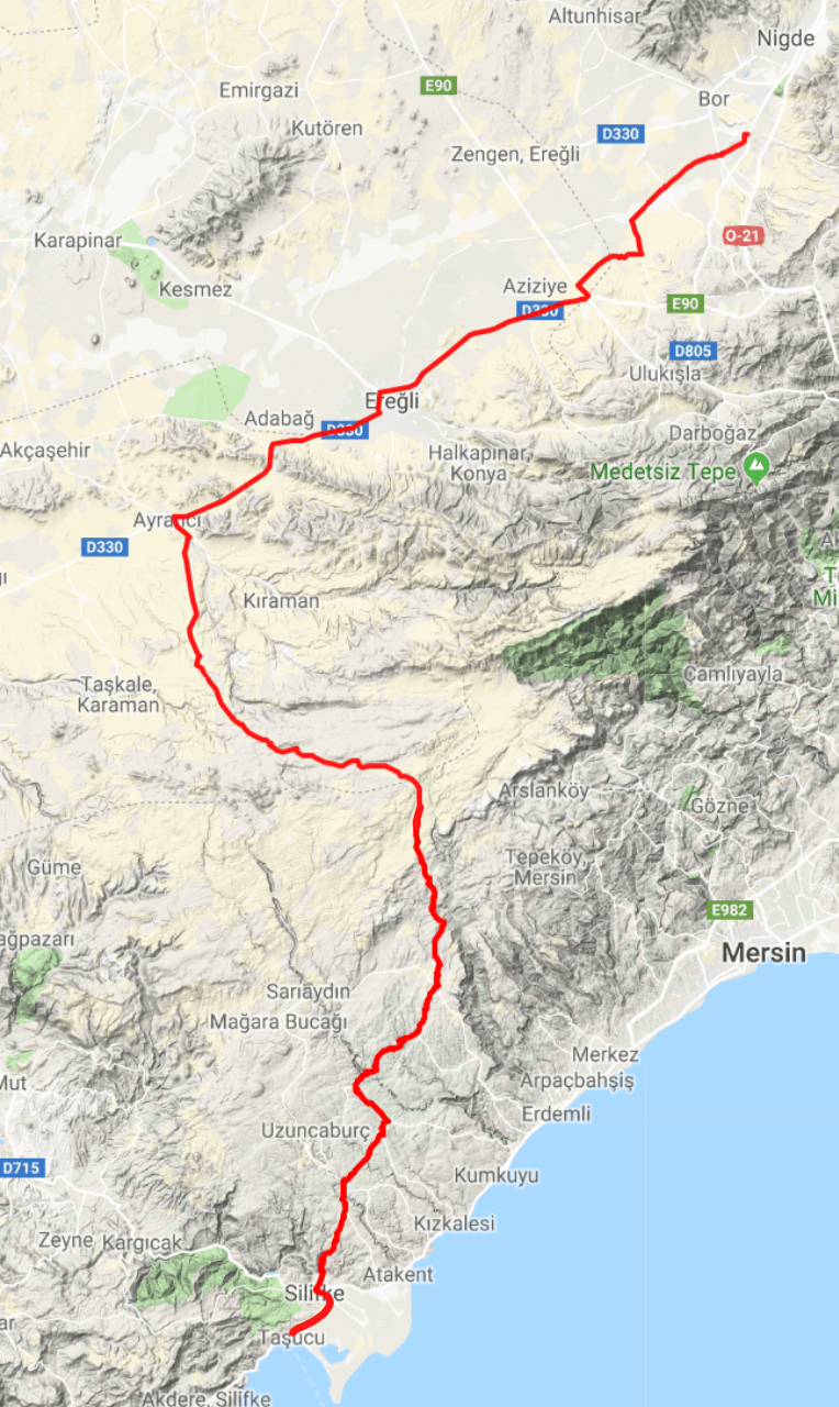 I had to remove my bags again but apart from that all went smoothly and I was soon stamped back into Turkey. From Tasucu, the port town, I rode for about ten kilometres to the city of Silifke, where I stopped at a supermarket. Thanks to the ferry arriving surprisingly on schedule, I arrived shortly before the shops opened and spent a few minutes rearranging my bags.