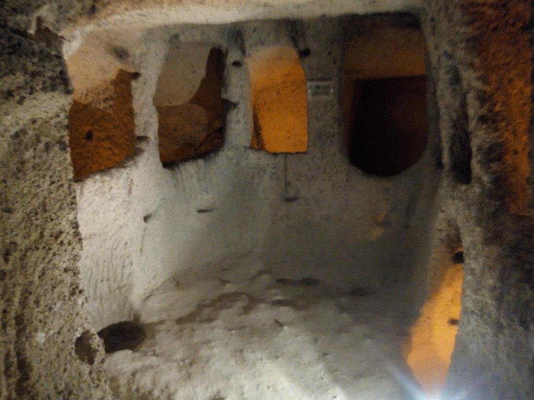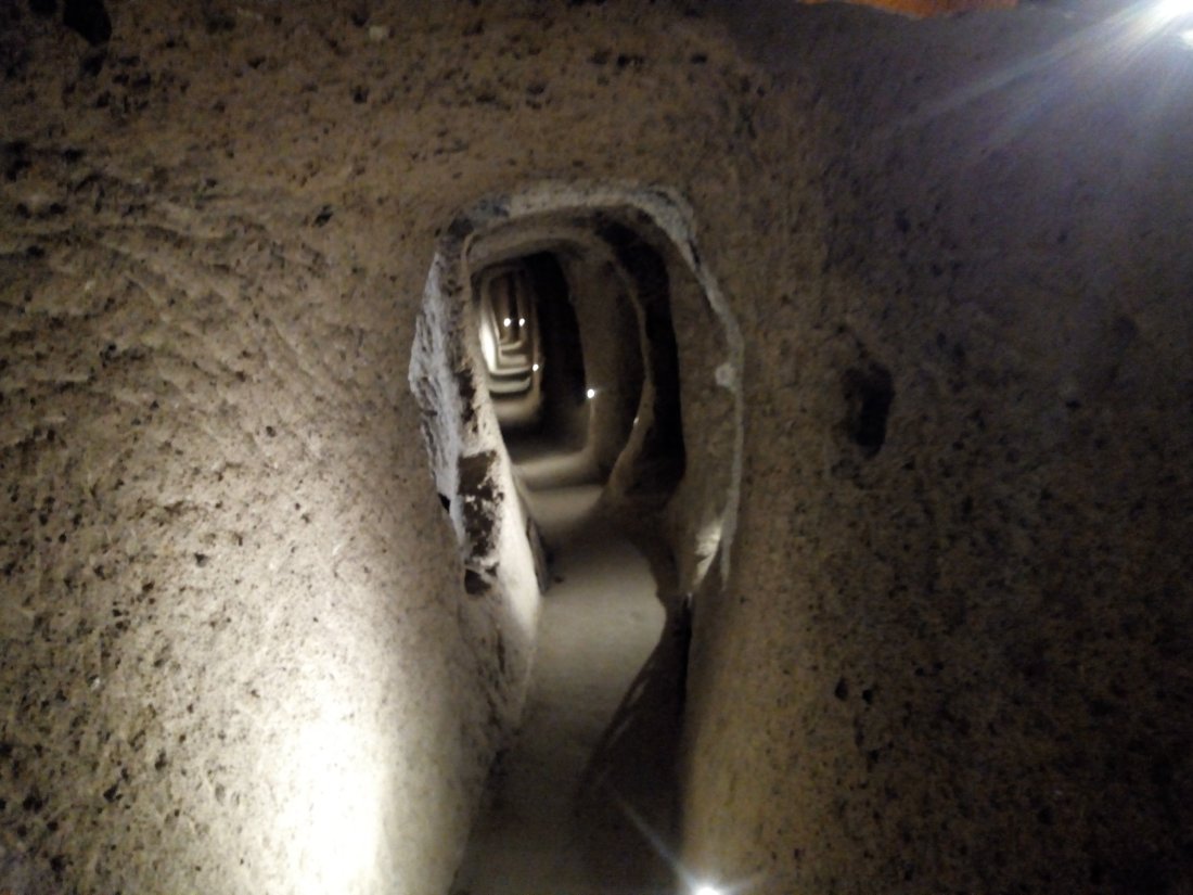 On my map there was an archaeological site marked, the underground city of Kaymakli. This sounded interesting so I stopped to check it out. There was quite a big building housing the entrance, where I went and paid the entrance fee of 35 Lira (about £4.50). I then wandered into the caves.