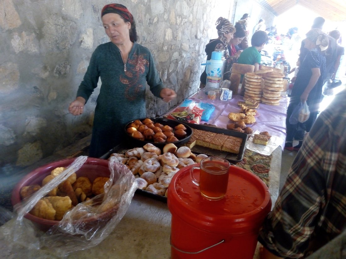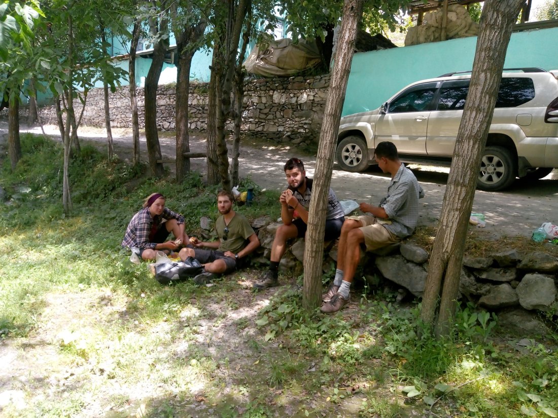 The next morning we set off toward the town of Rushan, which supposedly had a bakery. After a military checkpoint (where we were given a big bag of apricots) we reached the town and all bought some fresh bread and pastries. We also decided to try and fix our sim cards – since a couple of days ago, none of us had working internet. We went into the Megaphone shop, paid 2 somoni, and watched as the woman there pressed a few buttons on her keyboard – and now the internet worked again. We heard later that all SIM cards need to be re-registered after the second of every month, which seems bizarre, but that’s Tajikistan.