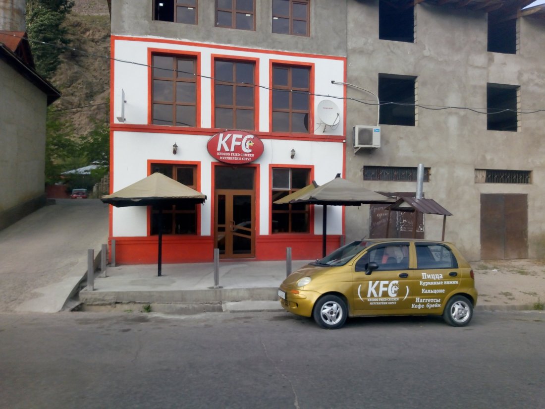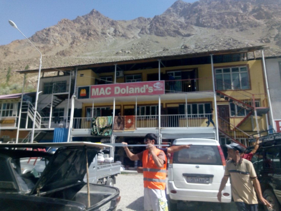 We stopped at a supermarket in Khorog before continuing on to our planned accommodation, the Pamir Lodge. Khorog was a peculiar town with some interesting western-ish venues. There was a KFC (Khorog Fried Chicken), MacDolands, and a minimarket called “Shop Walmart.” We actually ended up ordering takeout from KFC as the Pamir Lodge was quite a way out of town and we didn’t feel like going back into Khorog.