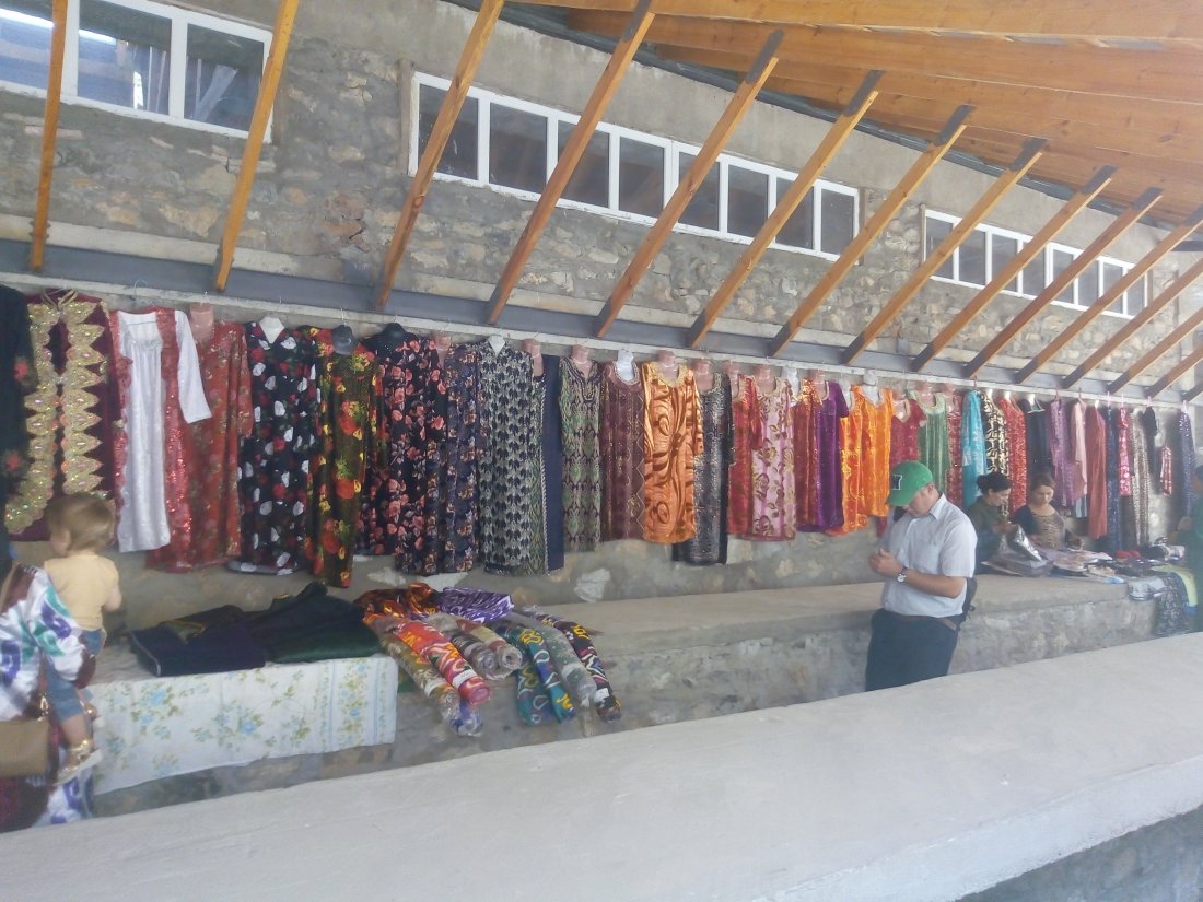 The next morning we planned to cycle out to visit a market. Once a week, the borders are opened and people from Afghanistan come to trade with those from Tajikistan. Just as we were about to cycle the 8km over there, Pax saw she had a flat tyre. She joked that she should just get a taxi rather than repair it and we suddenly realised that we could do just that. We arranged it through the hostel and paid 50 somoni (a little under £1 each, a bit of a ripoff it turned out) and made the journey with far less exertion on our parts.