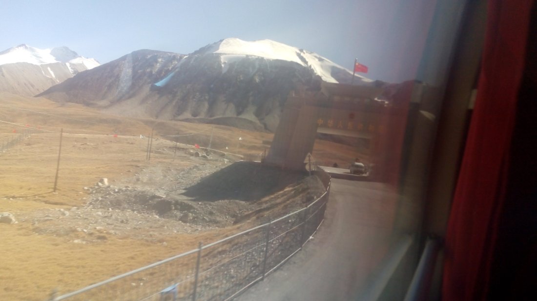 It wasn’t until shortly before the border that the road became steeper and the bus drove along a series of switchbacks up to the border, marked by a pass with an altitude of about 4700m.