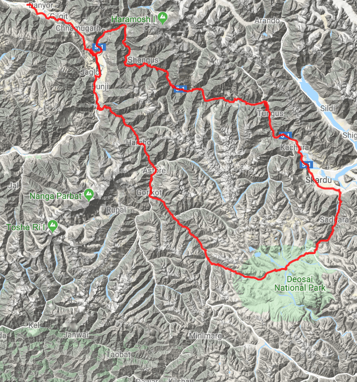 I continued riding until late – slightly after dark, in fact. I reached a village and stopped at a guesthouse. The owner wasn’t there but Sardar, a local government official, contacted him on my behalf. I waited in a shop with Sardar and the shopkeeper. They repeatedly insisted I’d just need to wait five minutes, but the understanding of time is different here and I didn’t expect that to be true. While waiting I asked them about Deosai, and they were both adamant that the road would be completely blocked by snow and totally impassable. The guesthouse manager arrived after an hour or so and I checked in.