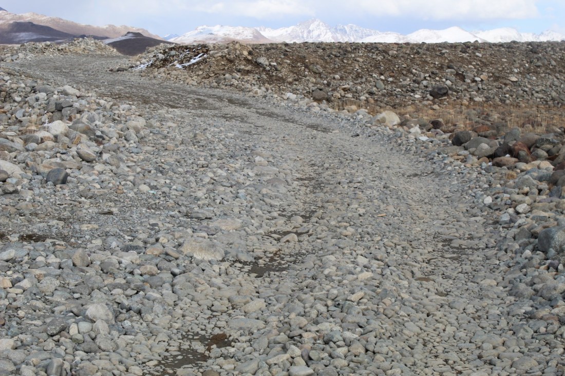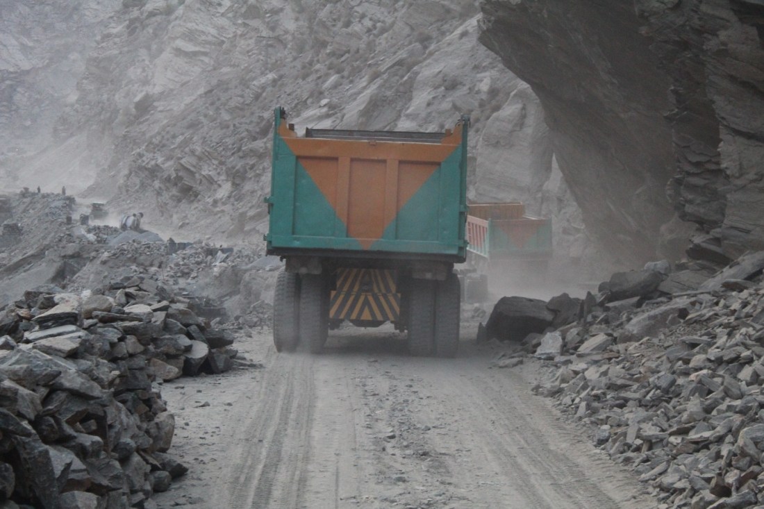 I followed the Indus for the rest of the day – well, for several days in fact. The road was mostly unpaved during this stretch, with lots of construction work. In most countries truck drivers seem not to notice road conditions and fly along at ridiculous speeds. Here it was almost the opposite, and I frequently overtook trucks going at 5-10 kph.