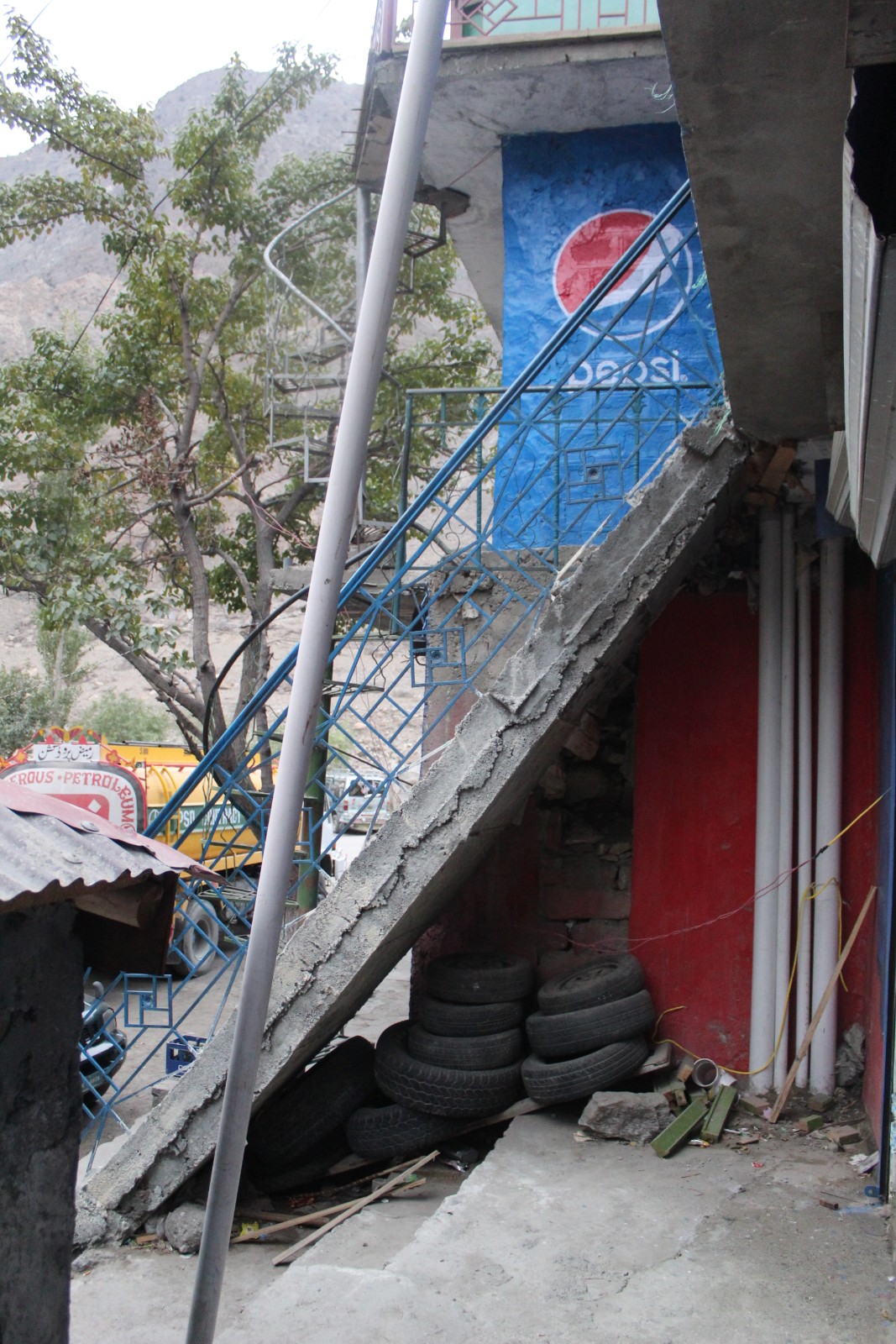 The road was badly potholed, where it hadn’t been destroyed entirely by landslides. I rode alongside a lake formed by the damming of the river. One of the blogs I read, from 2009, had to bypass a standoff between police and protestors on this road. The formation of the lake apparently submerged many homes.
