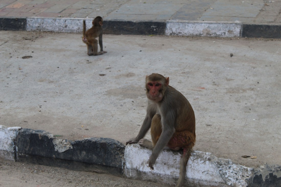 After visiting the fort I visited the holy site of the cyclist: Decathlon! I picked up a few things there, and got some work done at a nearby bike shop. Finally I started to cycle out of the city. There was a bike path for part of the way, but I didn’t use it. Besides the usual problems it had one more: it had been taken over by monkeys!