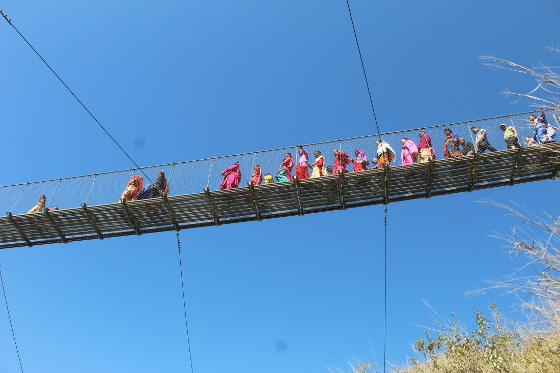 The next day we reached Beni, the end of the descent. Shortly past the town there was a suspension bridge, by what seemed to be an entire village, accompanied by a marching band. Presumably it was a wedding or some other celebration.