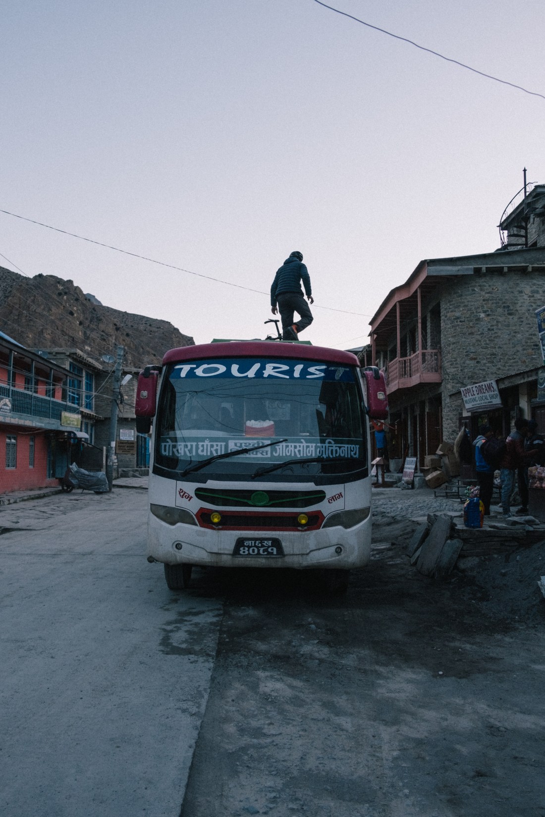 Silas hadn’t managed to find a bike shop so he would be staying in Jomsom tonight, and taking a bus back to Pokhara tomorrow. I needed to stay to get the vaccine. In the end the others decided to stay too so that we’d all have another night with Silas before he headed off. It was quite a nice hotel and we were up late playing Tichu as usual.