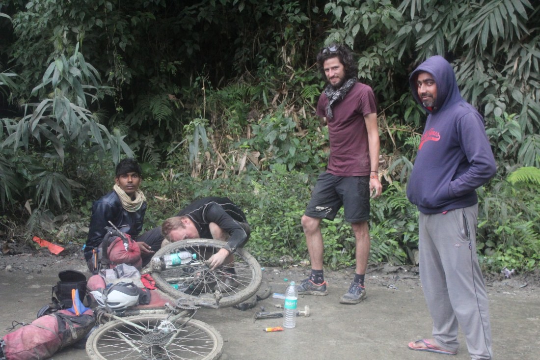 Night, Jamie and I were all headed in the same direction. Night was behind schedule, so he planned to take a bus, but Jamie and I set off cycling from Silchar together.