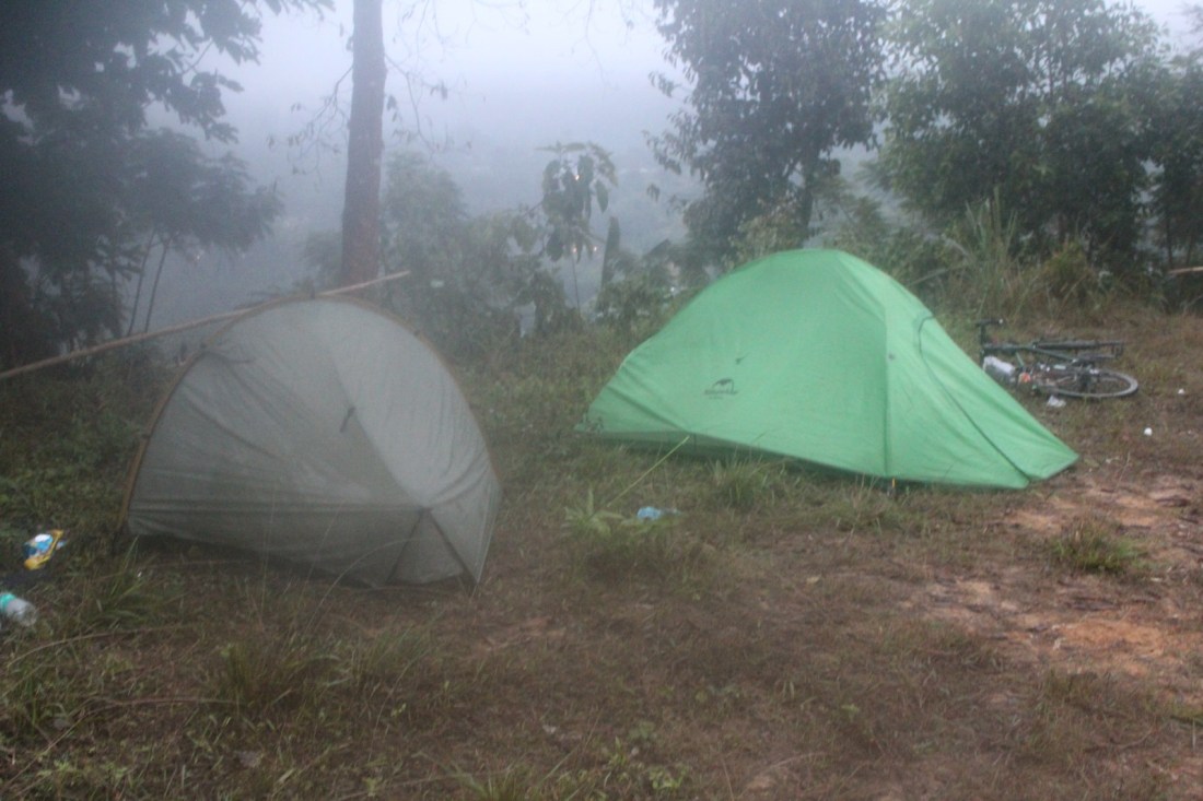 At the end of the day we began our longest climb of the day. My “derailleur” began to struggle to keep the chain in gear, but we made it up to 1000m, where there was a small flat area with a building. We spoke to the people there and they were happy for us to set up our tents nearby.
