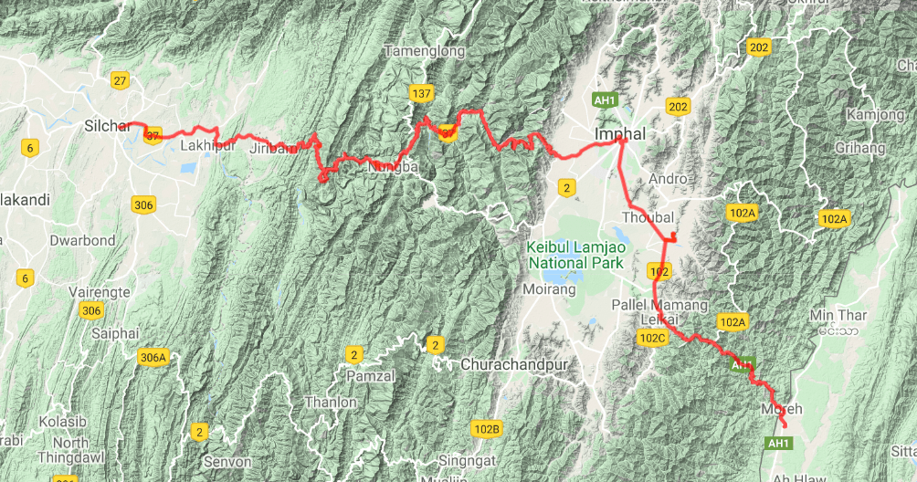 After a few hours riding across plains in Assam, we reached the state of Manipur and entered the mountains again. Manipur is one of India’s more rebellious states, which was reflected in a greater police/military presence. On crossing into the state, we had to enter our information into several logbooks. Then we set off into the hills: the flat farmland of Assam was over!