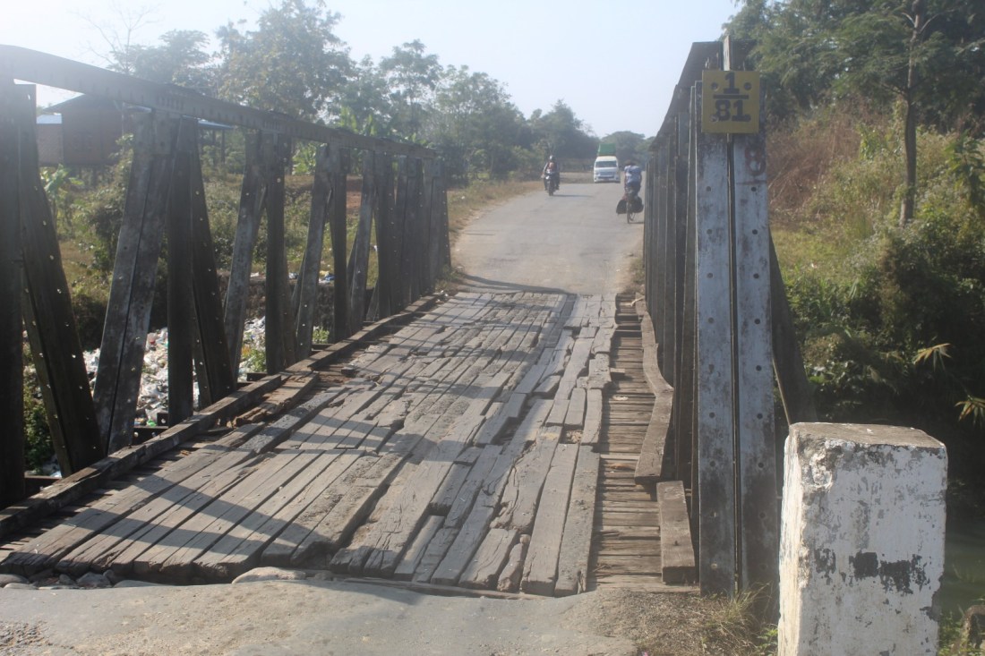 The road was smooth and flat. It was quite narrow, but as the only other traffic was motorbikes, that didn’t matter. The bridges were a bit of a contrast to the good road, often being made of wood.