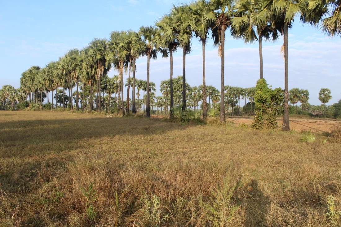 From here, the land was mostly farmed, often with lines of palm trees separating the fields. It was still quite sparsely populated, though, so I enjoyed cycling along, heading very gently downhill.