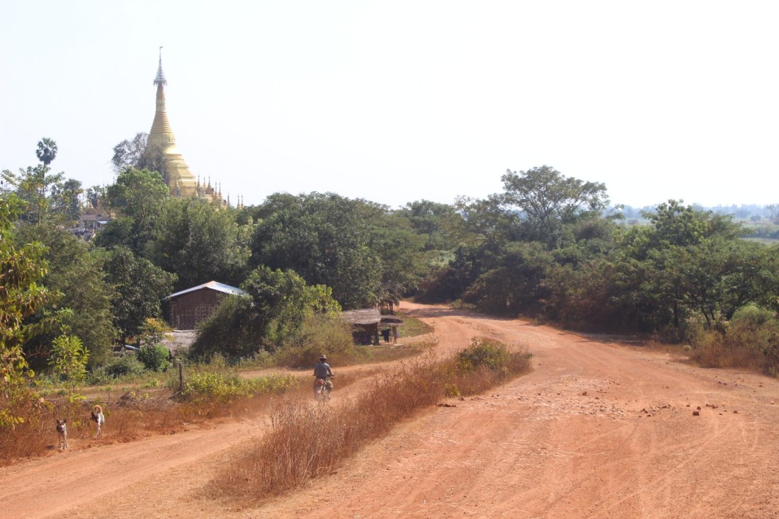 I said goodbye to Jamie and set off cycling, gradually climbing on a pleasantly quiet road. On my left I could see Mt Popa, an extinct volcano that is a popular pilgrimage site for many Burmese.
