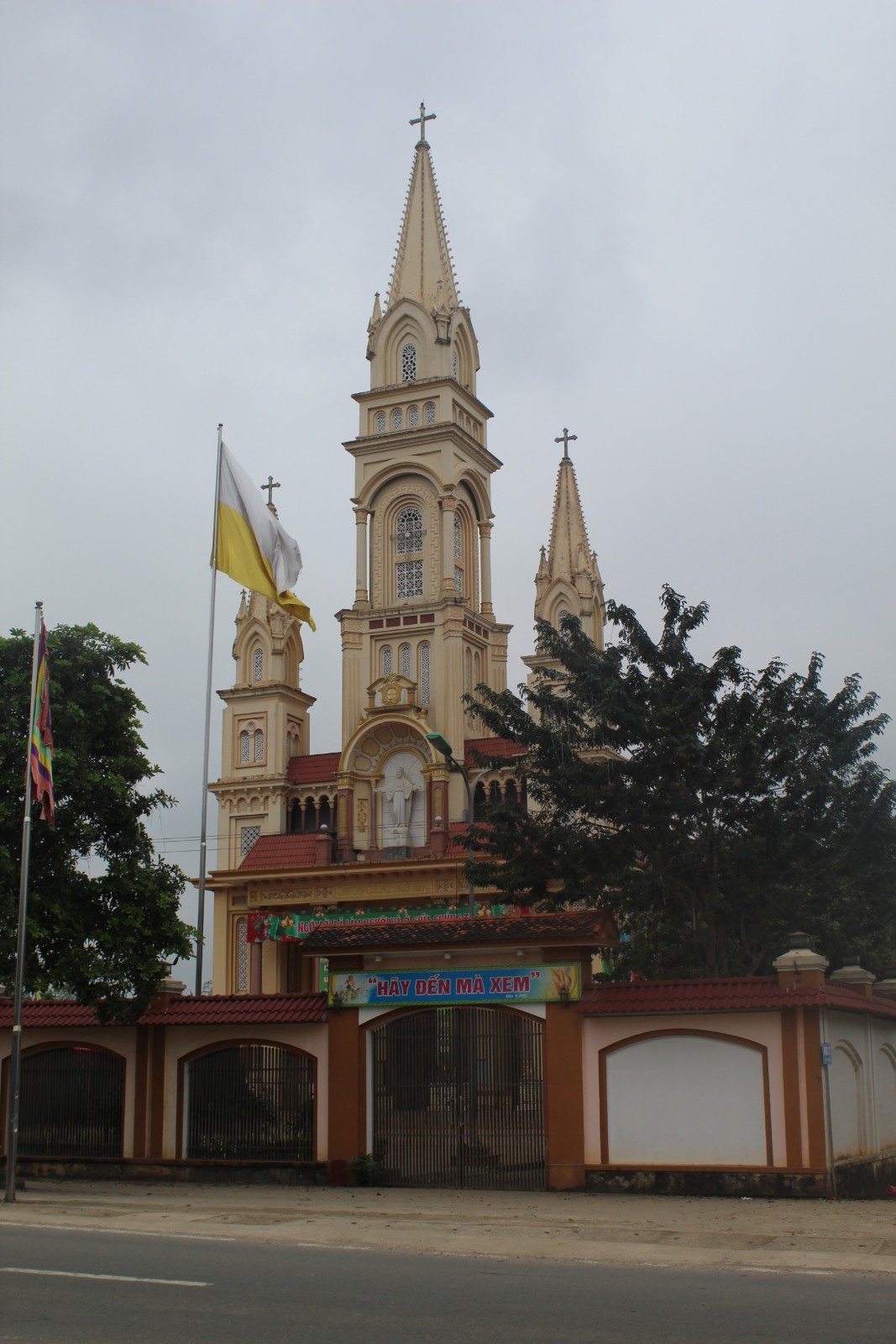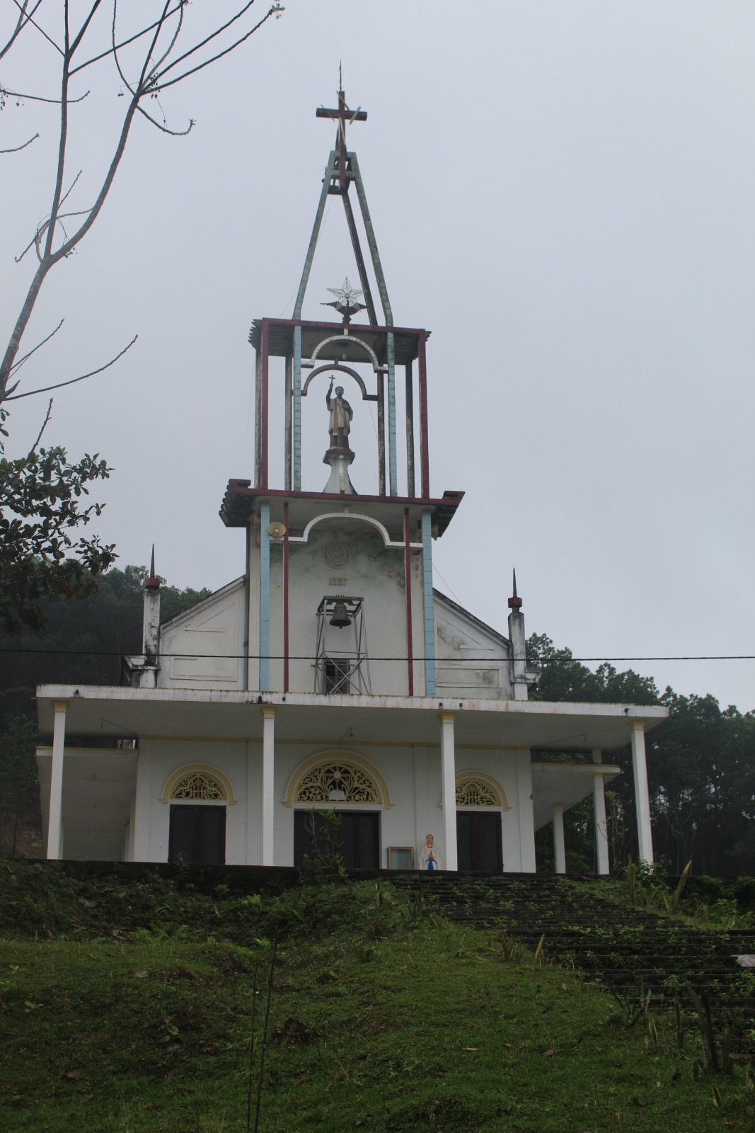 The landscape was a lot greener here, and more varied. I passed lowlying rice farms before climbing up into low, forested hills. Rather than temples, churches were the most common religious building in the area.