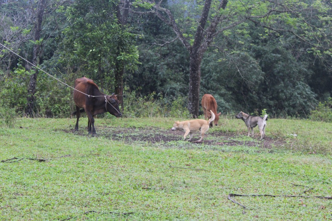 A few of the dogs tried to chase me, but thankfully I avoided getting bitten again. At one point, I saw a pair of dogs trying to fight a pair of cows. The cows were tied up and seemed more bemused than anything. Whenever the cows moved even slightly, the dogs would take fright and jump away.
