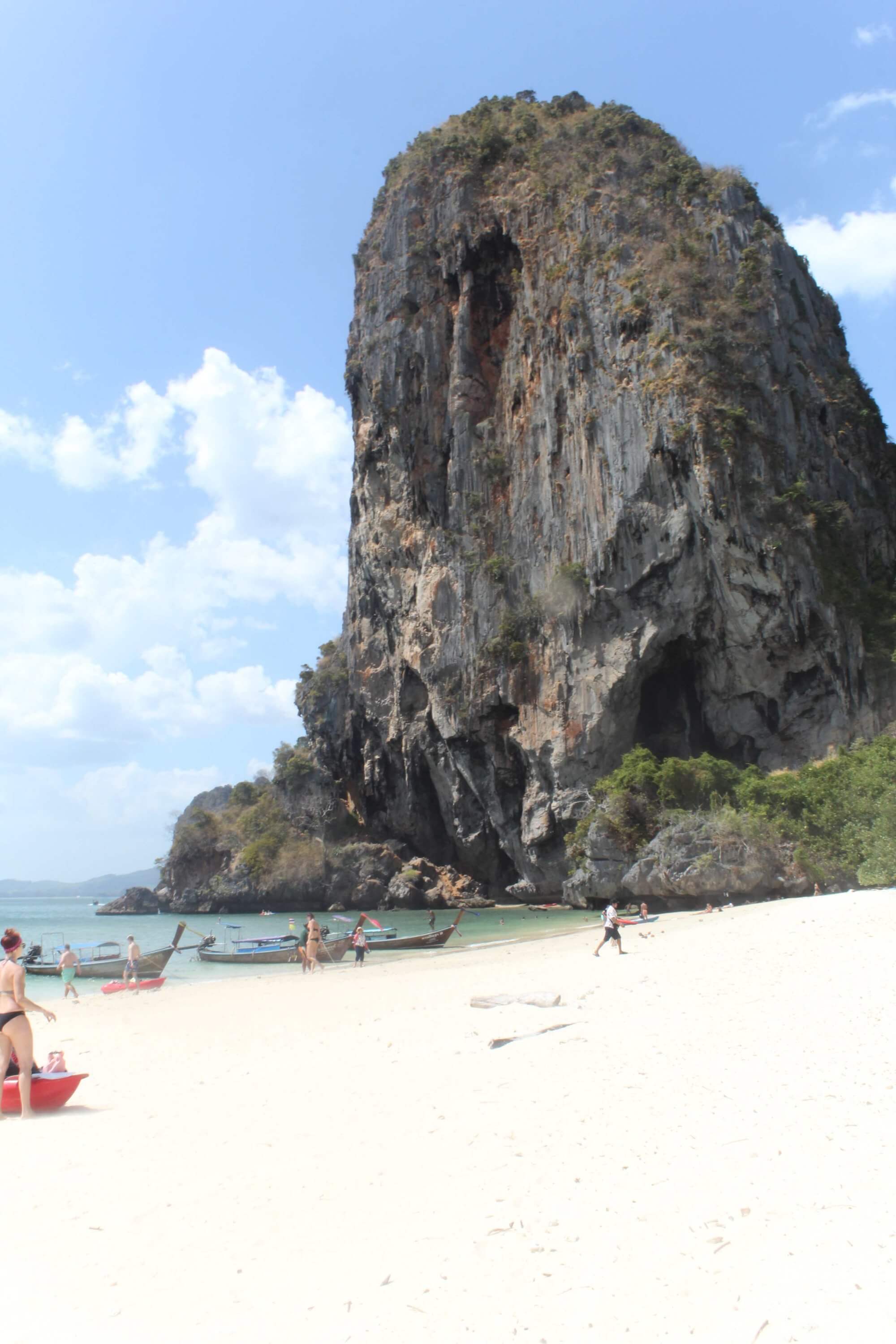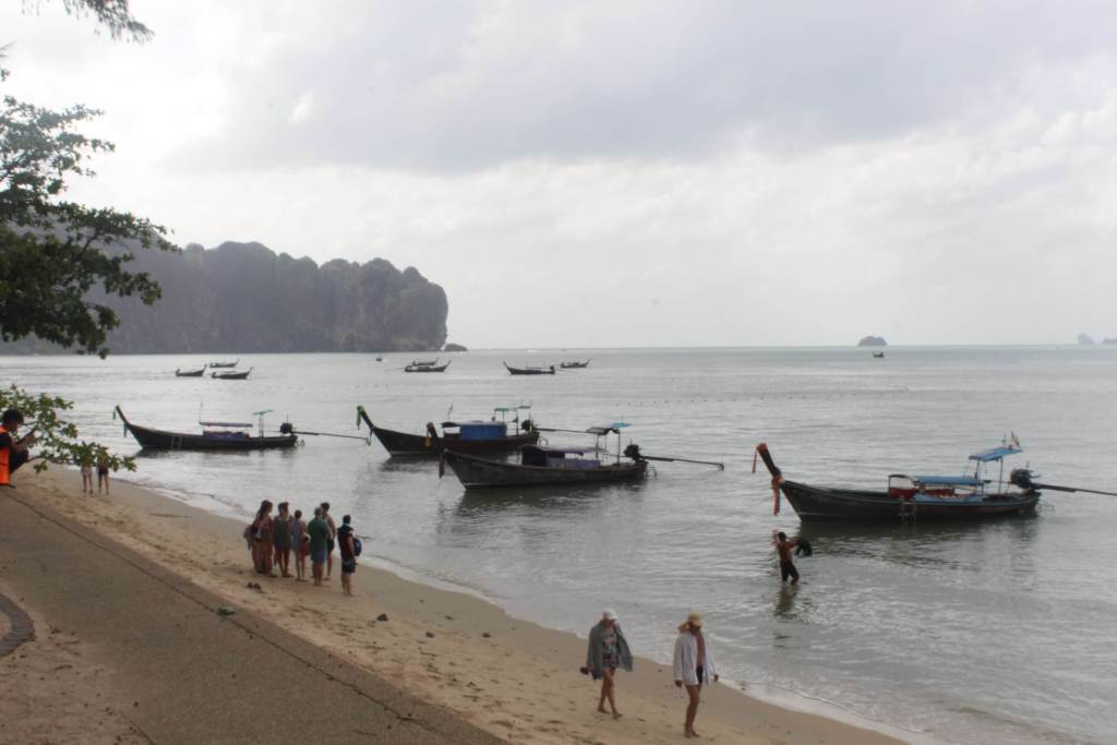 Arriving at Ao Nang was a sudden change from this conservative style as I reached a busy backpacker town. I dropped my bike at a hostel then took a boat to Railay beach, on a small peninsula not connected by road to the mainland. This is supposed to be one of the nicest beaches in the world. It was nice enough but I didn’t think it seemed that much better than the beaches back home. The water was a much more pleasant temperature though!
