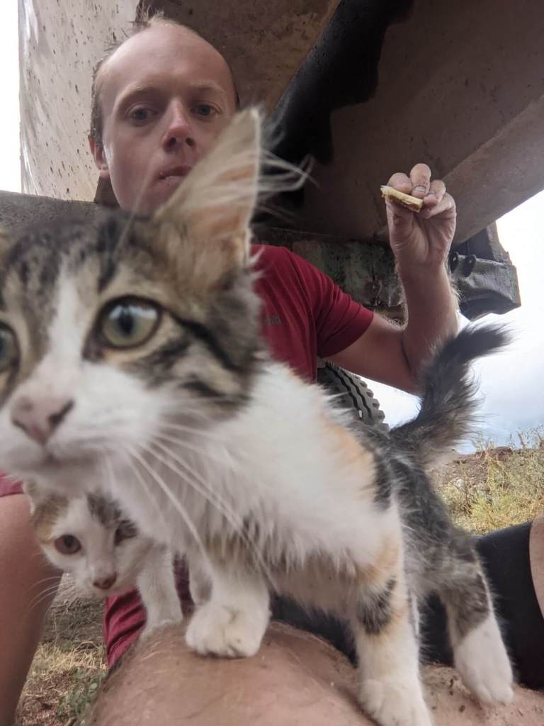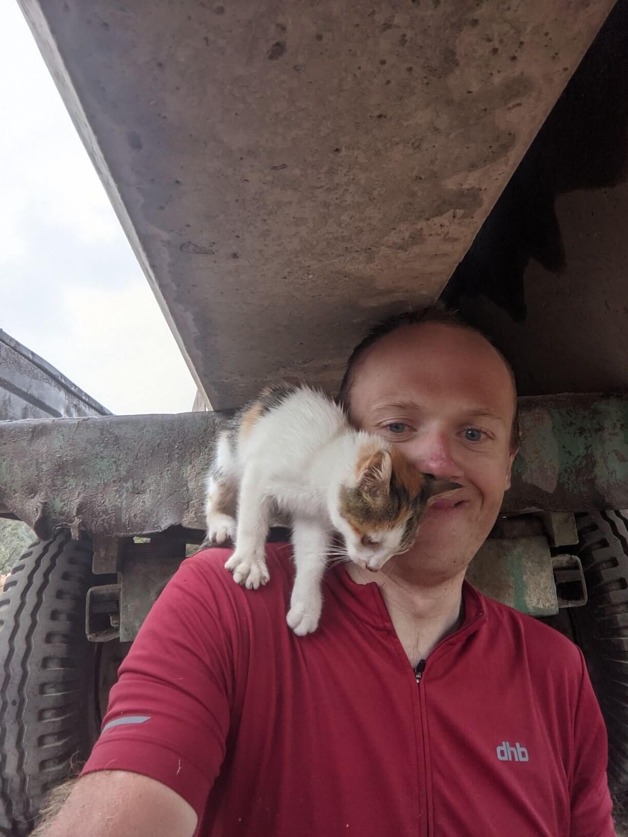 While I was there, two kittens came to see me. They were quite keen on sharing my food, climbing all over me and the bike in their efforts.