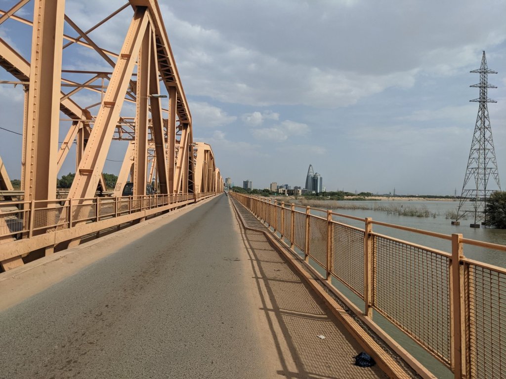 As has been something of a norm the last few days, a headwind developed and so the last kilometres to Khartoum passed by slowly. I passed a police/military checkpoint – it’s not the first I’ve seen in Sudan, but the first I stopped for. They checked my passport then one soldier said “Welcome to our country – please enjoy your time here.”