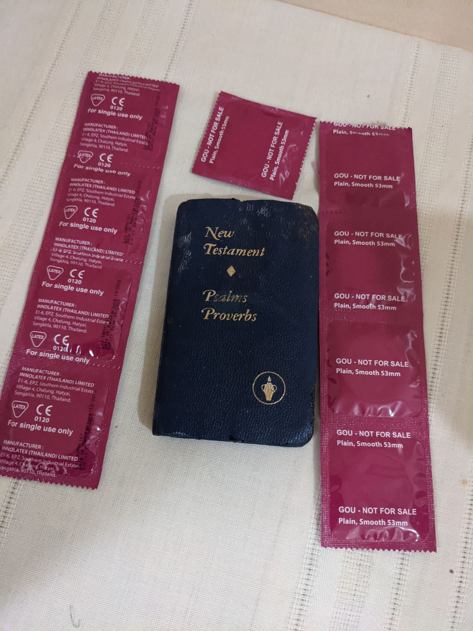 Included in the room where a pile of condoms – government issued ones. HIV rates are sadly high in this region – shortly before crossing the border, I saw my first shop specifically dedicated to HIV self-tests.