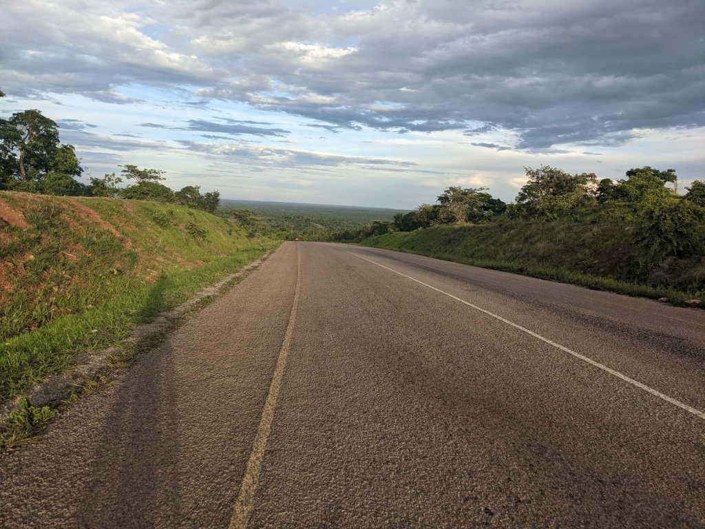 The road was flat for a couple hours past Sitalike. Despite the washboard surface I rode quickly, encouraged by the swarms of Tsetse flies around me.