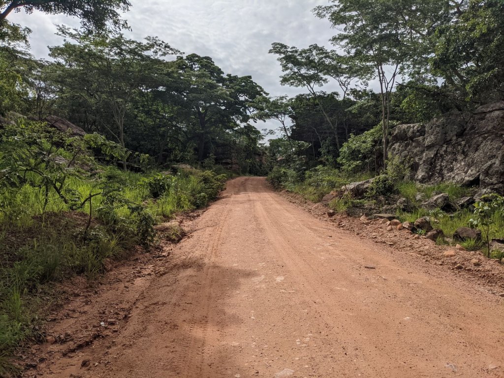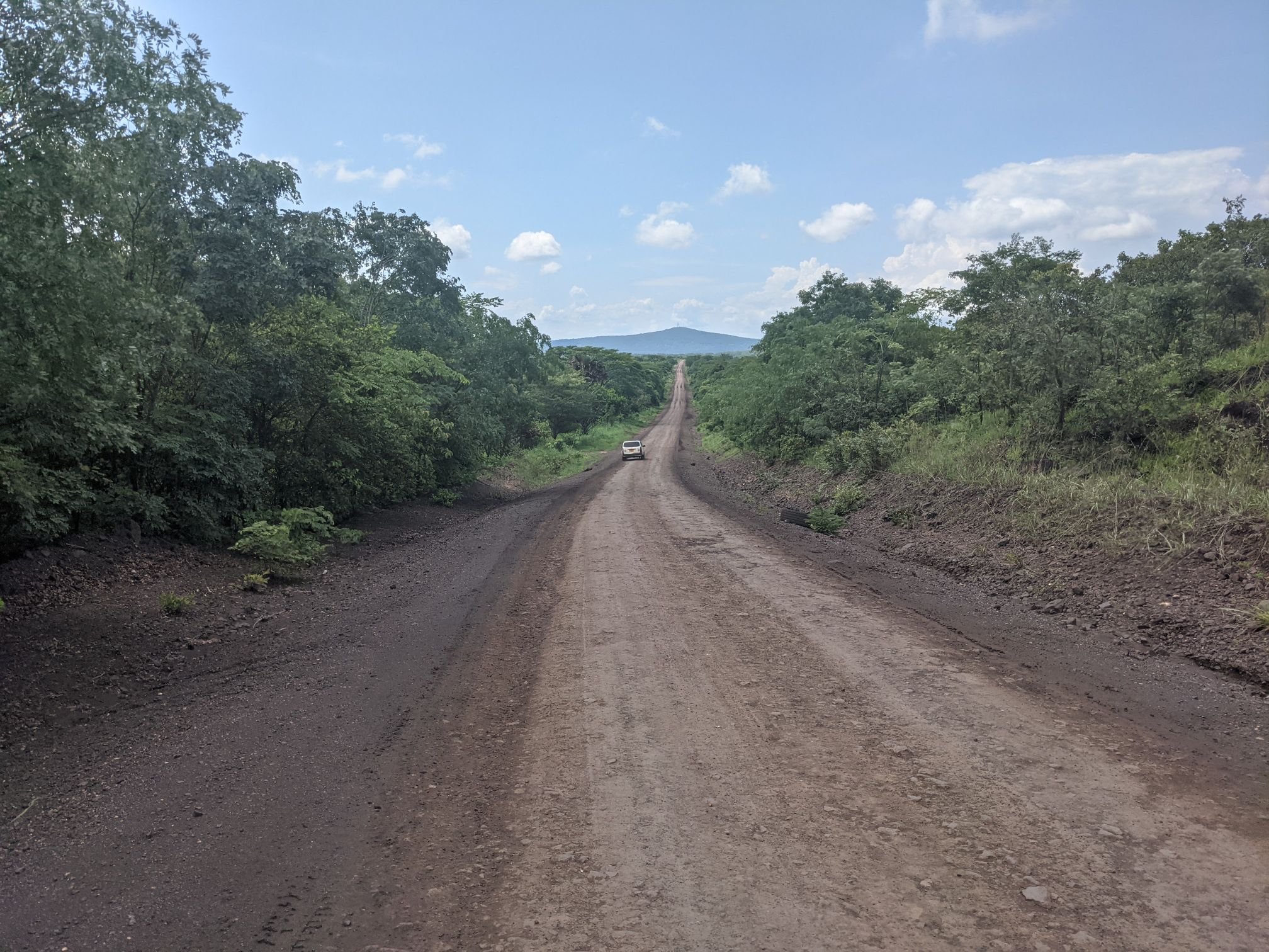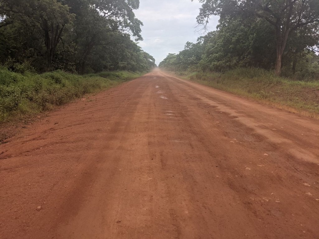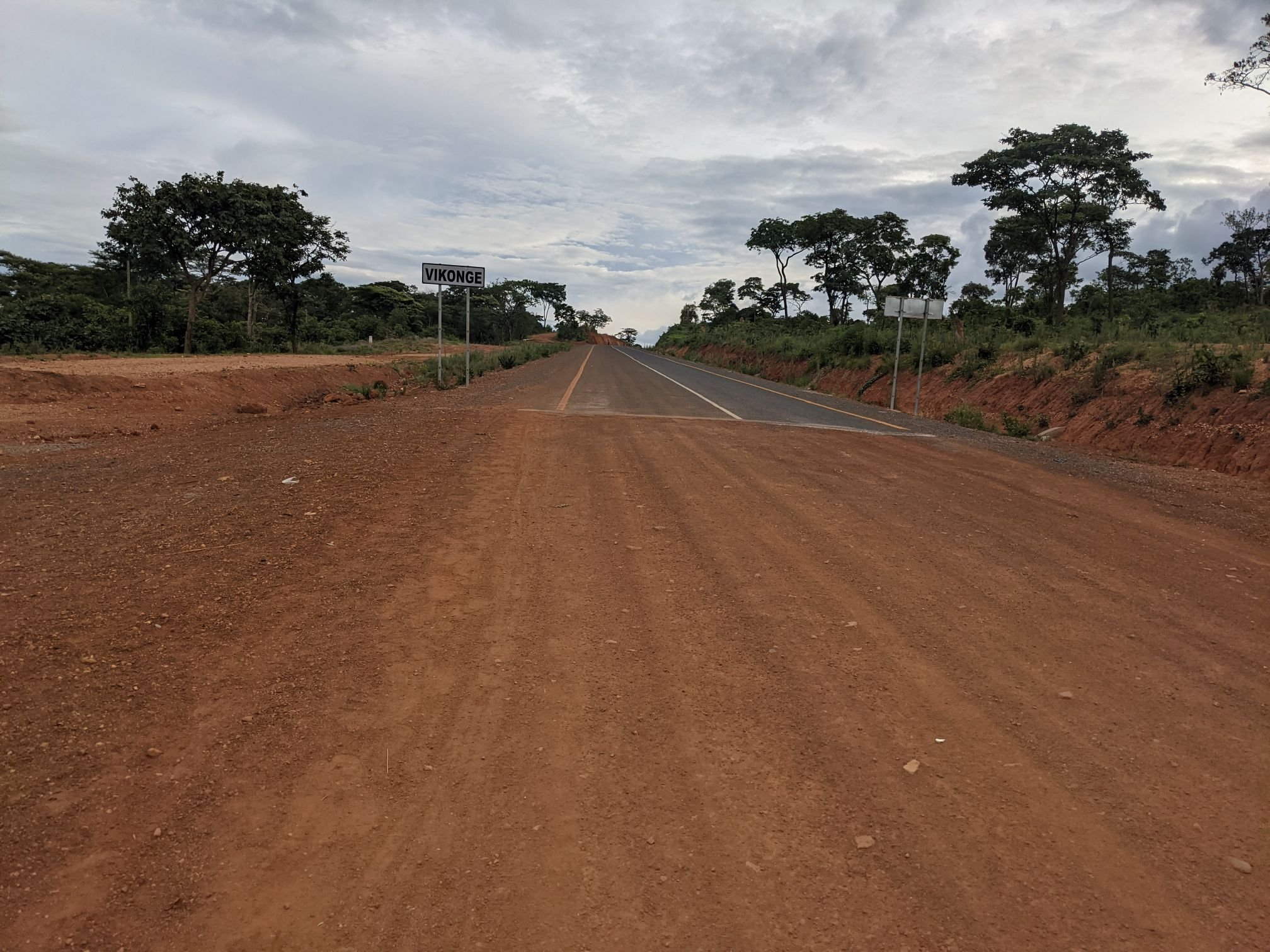The tarmac resumed a bit earlier than I expected, near the village of Vikonge. The dirt road had lasted 150km or so, and had been of variable quality. There were lots of washboard sections, but usually (not always) there was a smooth area wide enough to ride a bike through.