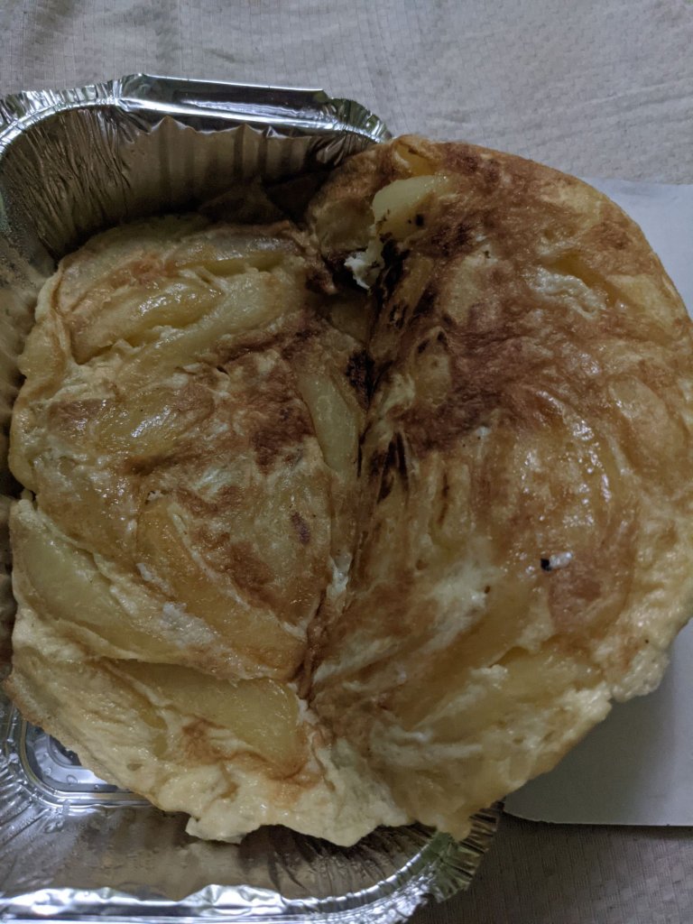 On the way out I stopped for a Chipsi Moyai. I’d heard of these as being an omelette with chips, and assumed that simply meant chips served on top of an omelette. It turns out the omelette is made on the same pan as the chips, so the chips are actually cooked into the omelette.