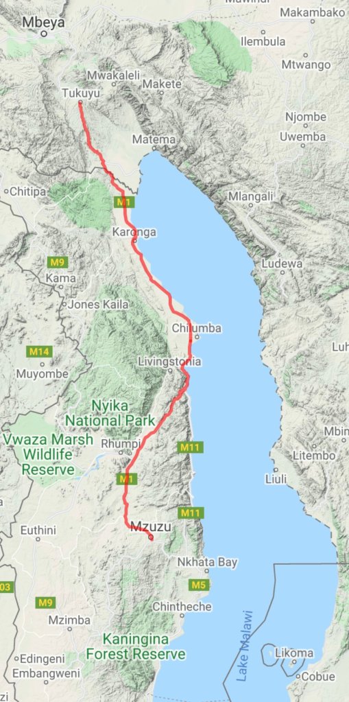 I felt a bit better after that, and rode the last 10km into Mzuzu. I checked into a guesthouse. I decided it would be a good idea to have a day off tomorrow. Although it’s about 5°C cooler here as Mzuzu is a higher altitude, that’s still quite warm so in the morning I went and found a place with a fan. I checked in there then went to a supermarket – ShopRite, a chain that is apparently found from here to South Africa.