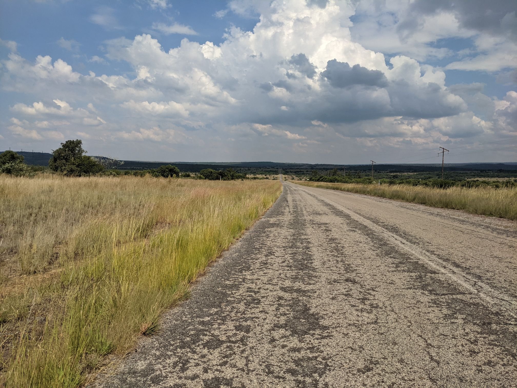 The road I took away from Zeerust was a quiet one, leading up into some hills. I’d been riding for a couple hours when it suddenly ceased to be paved.