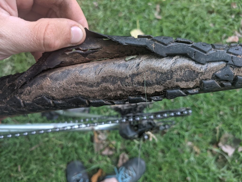 Shockingly, despite the fact I’d dreamed it, this did not turn out to be the case. I slowly rode along the often washboard road, hoping my rear tyre would survive. It was in a pretty bad state.