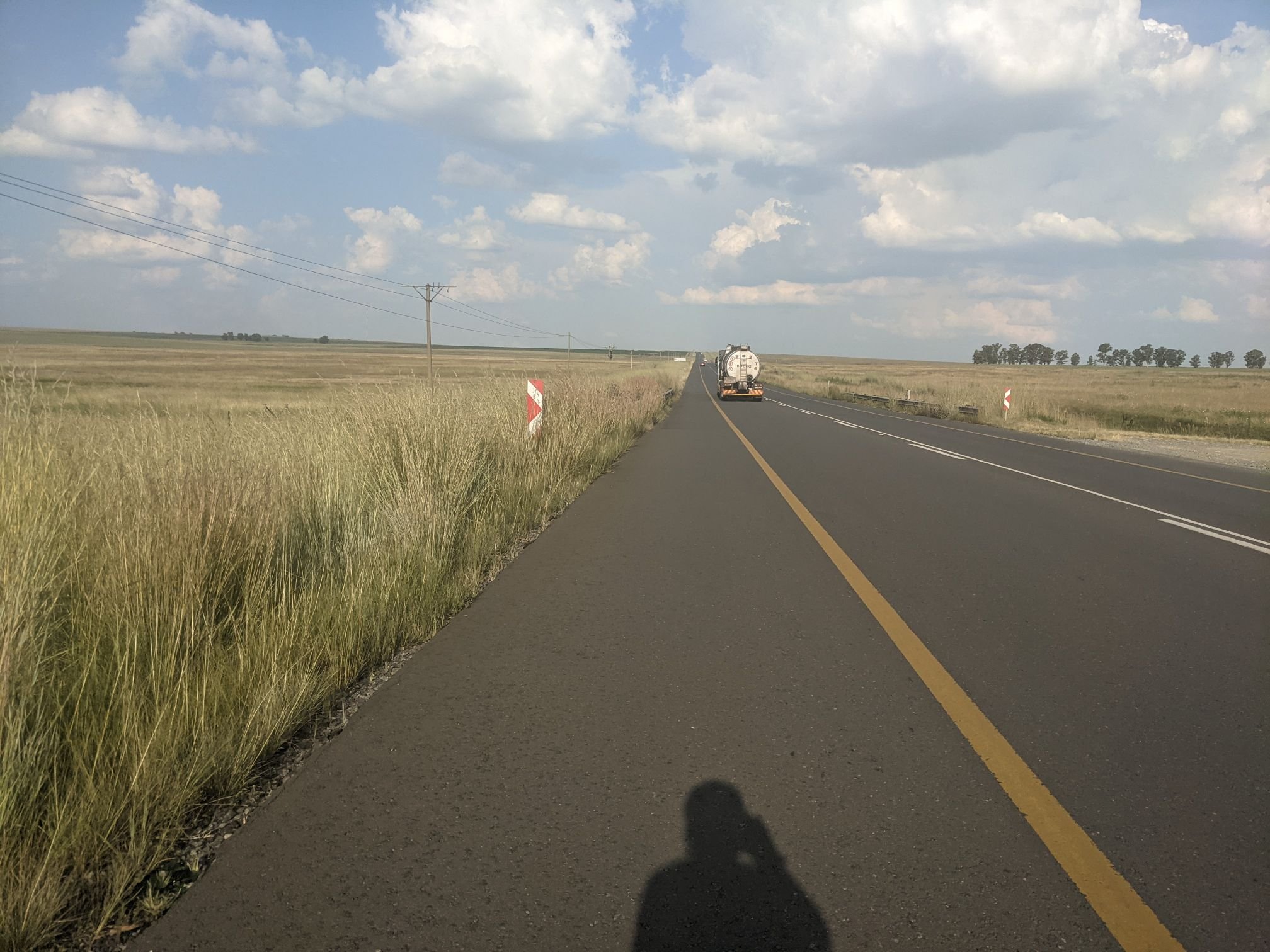 The South African side seemed to be a bit hillier. The road was still quite flat but there was a bit more of a view.