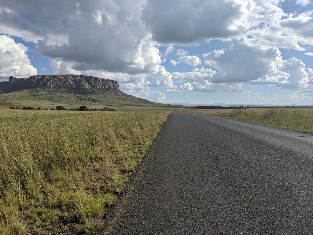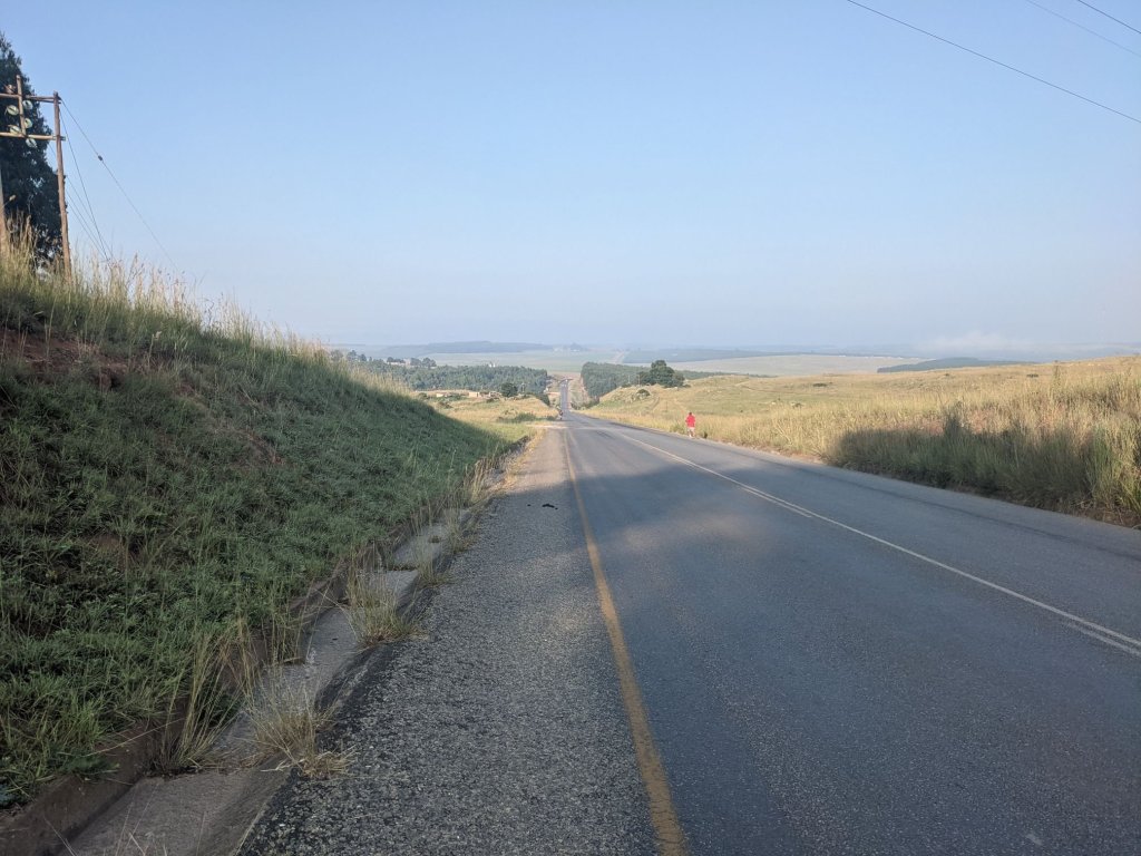 I’d said goodbye to Linda and Jan the night before, so early in the morning I set off cycling away from Piet Retief. The day began with rolling hills, before beginning a long consistent climb.
