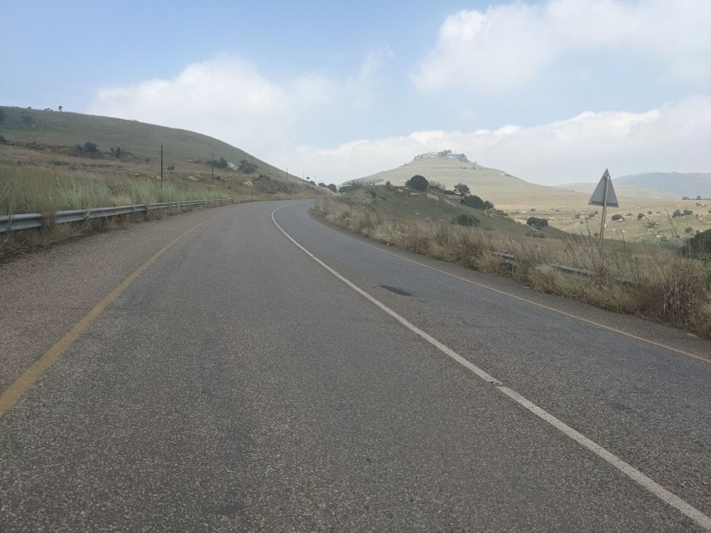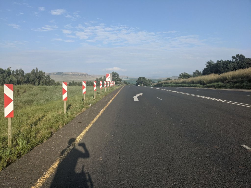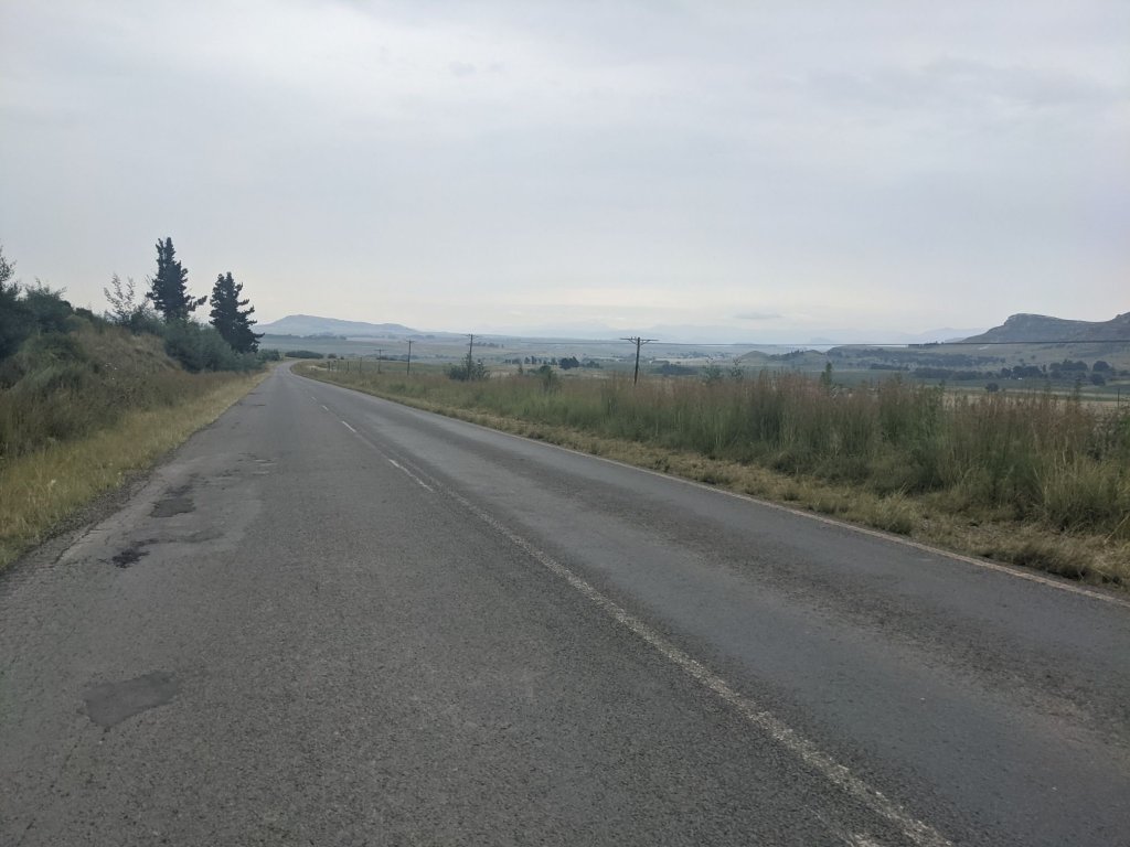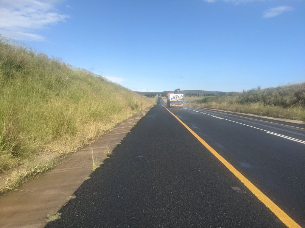 The tarmac continued down to Harrismith. I was going to go to a supermarket there but after seeing the queues, decided I had enough food. I’ve been told the supermarkets here are very busy at the end of the month as that’s when people are paid, and they come a long way to stock up.