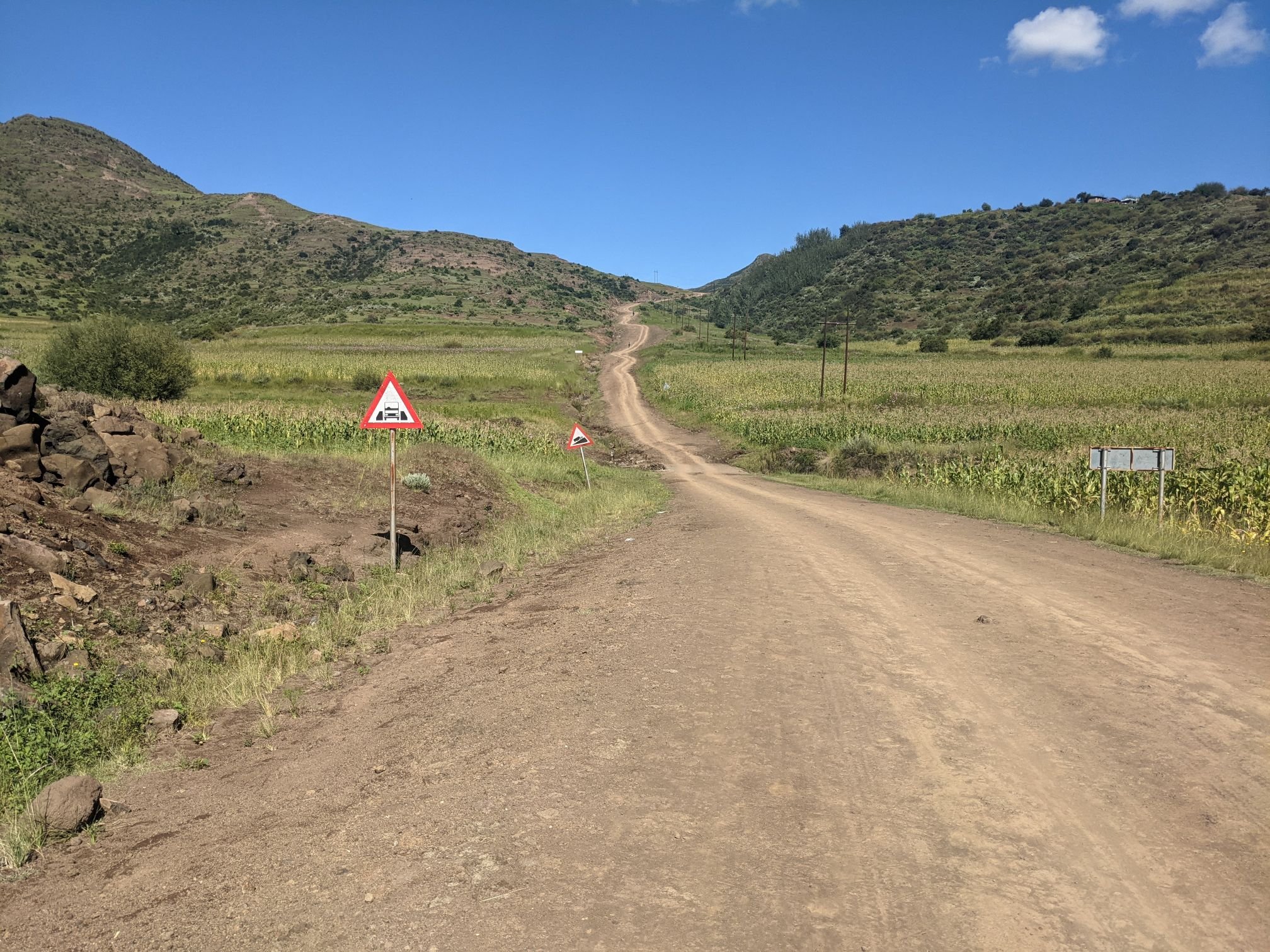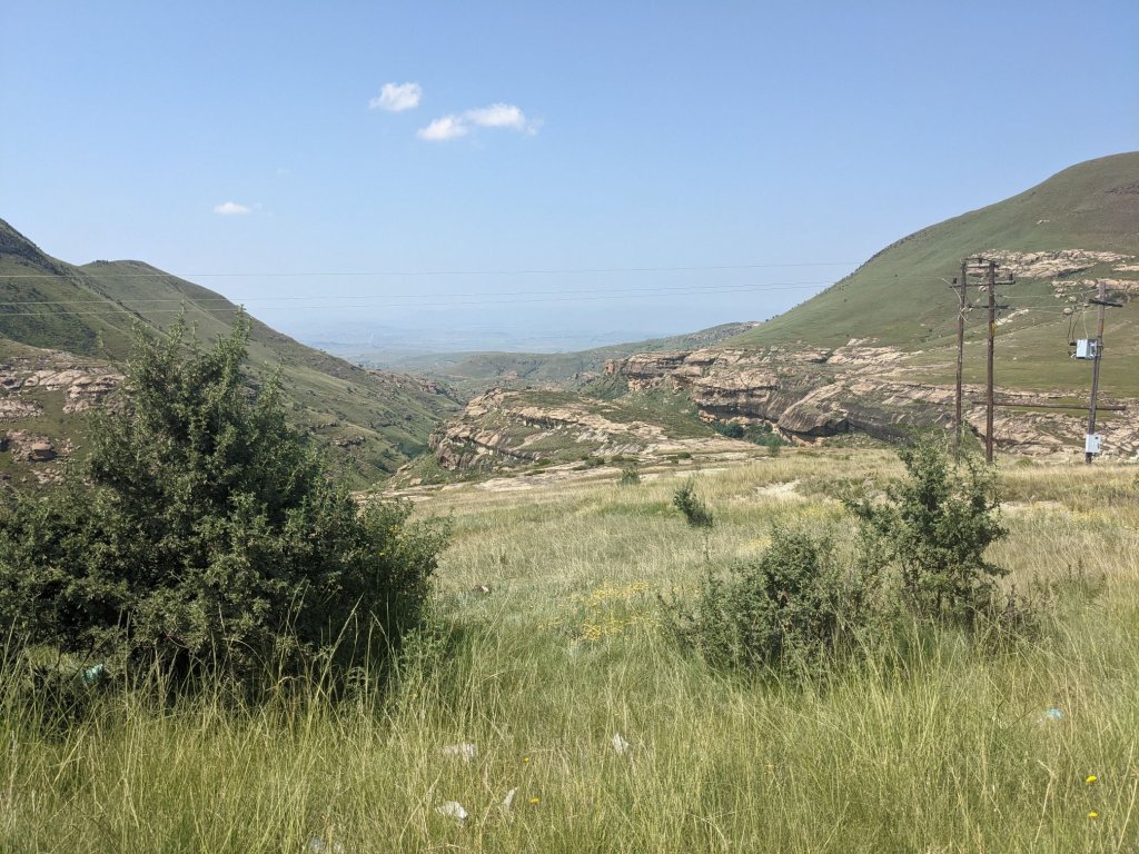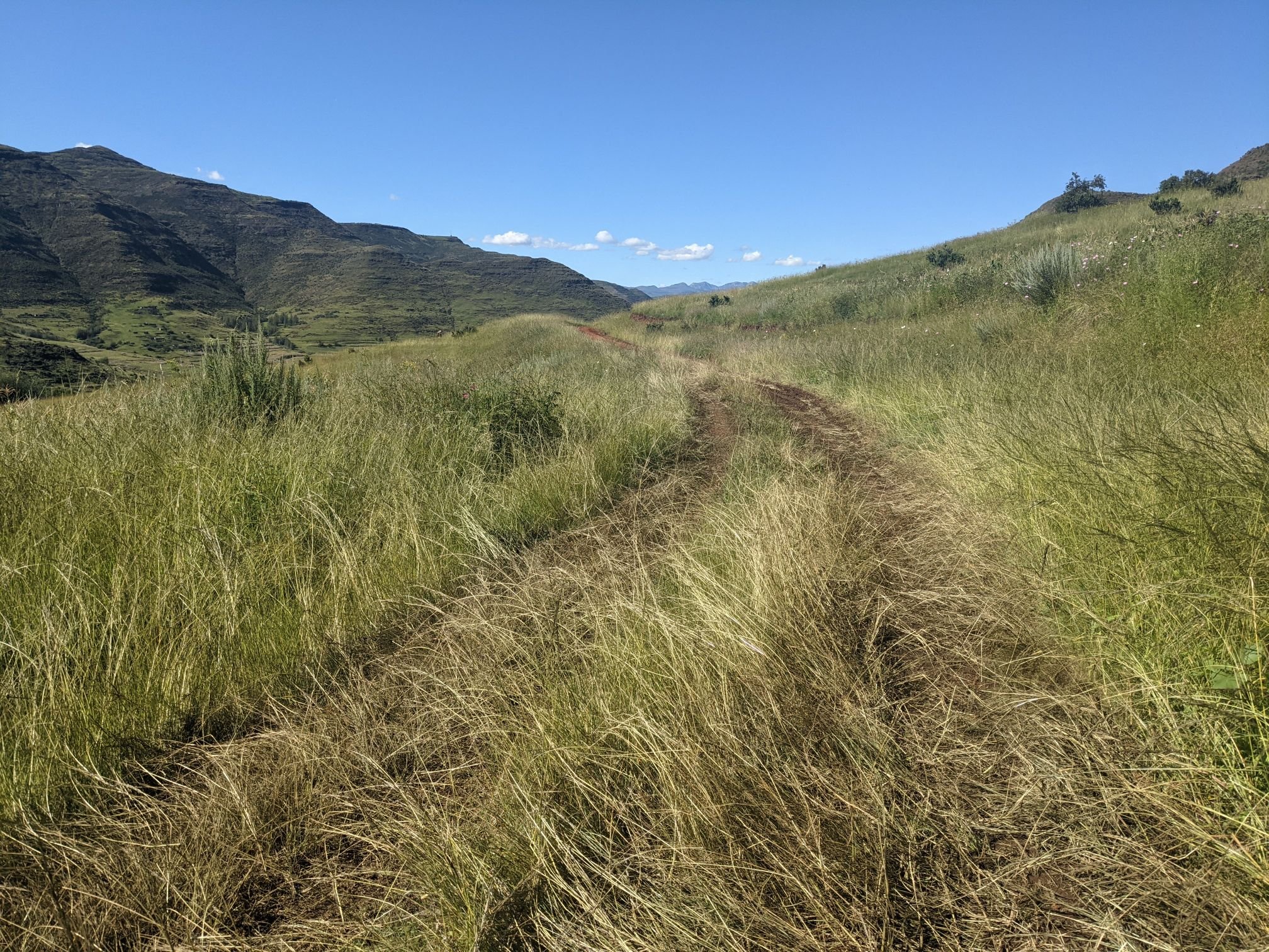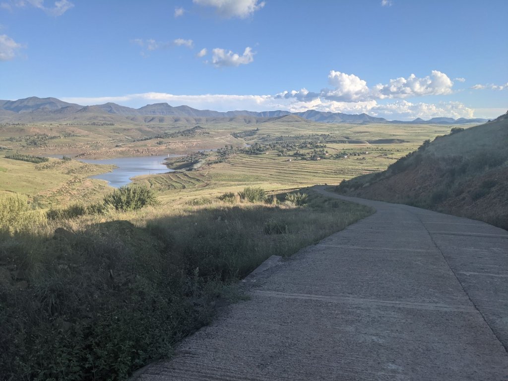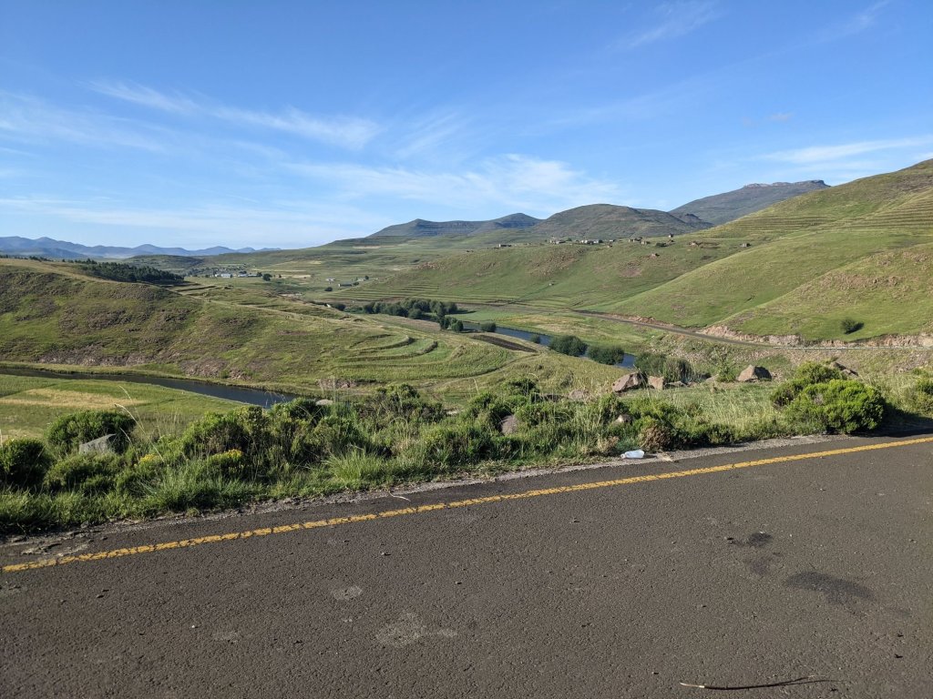 Lesotho is very mountainous, with the highest elevation of any country. To begin with that manifested as constant ups and downs, none more than 100m.