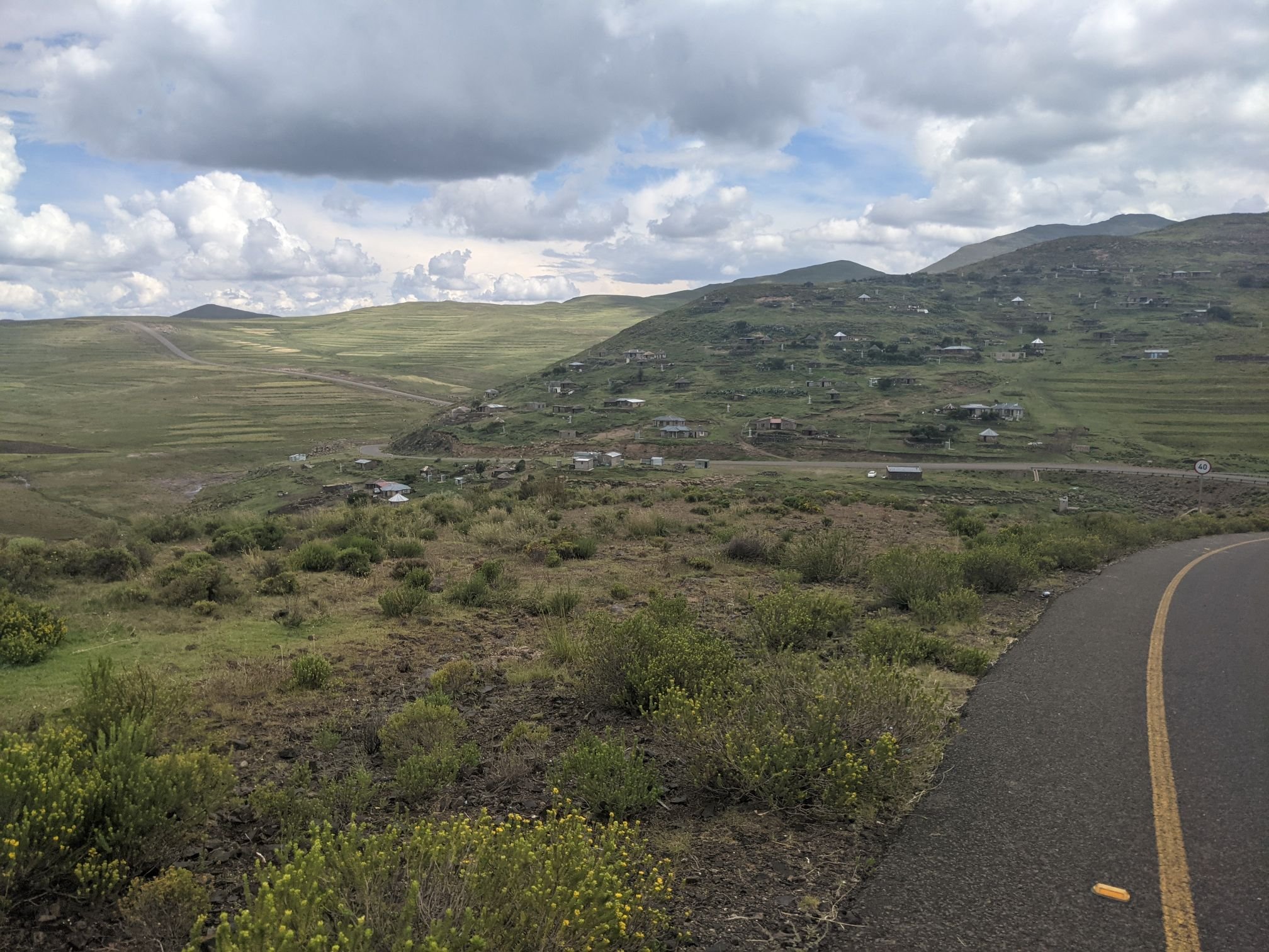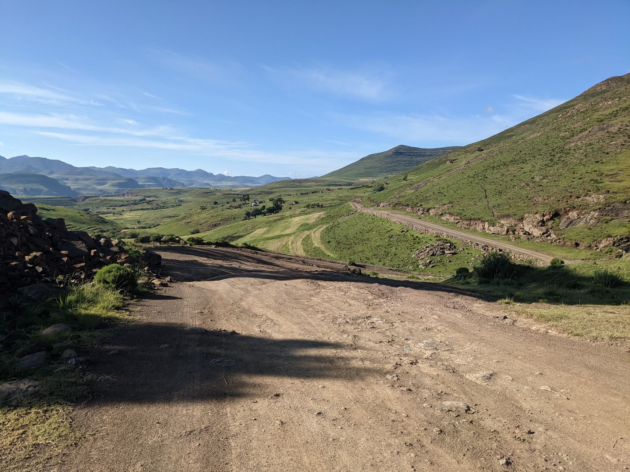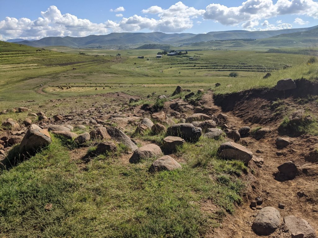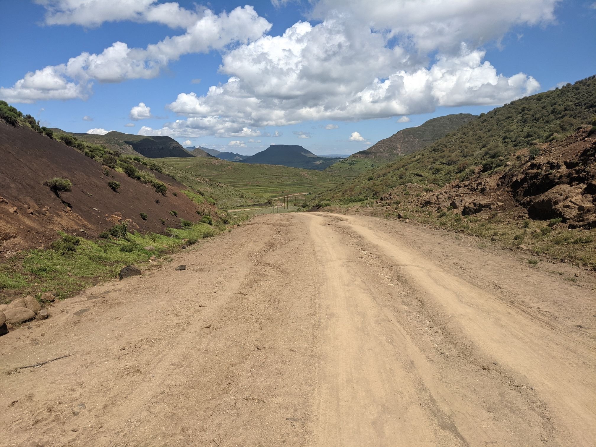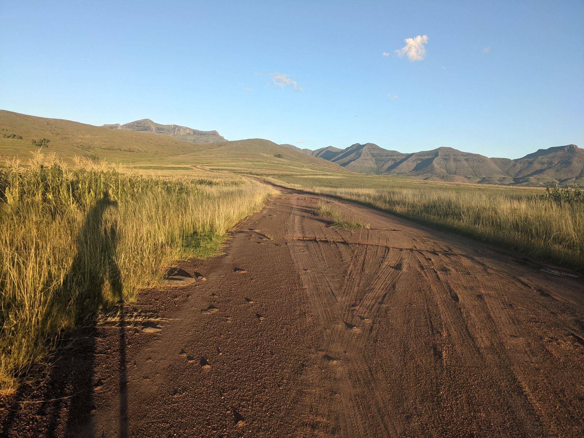 Lesotho is very mountainous, with the highest elevation of any country. To begin with that manifested as constant ups and downs, none more than 100m.