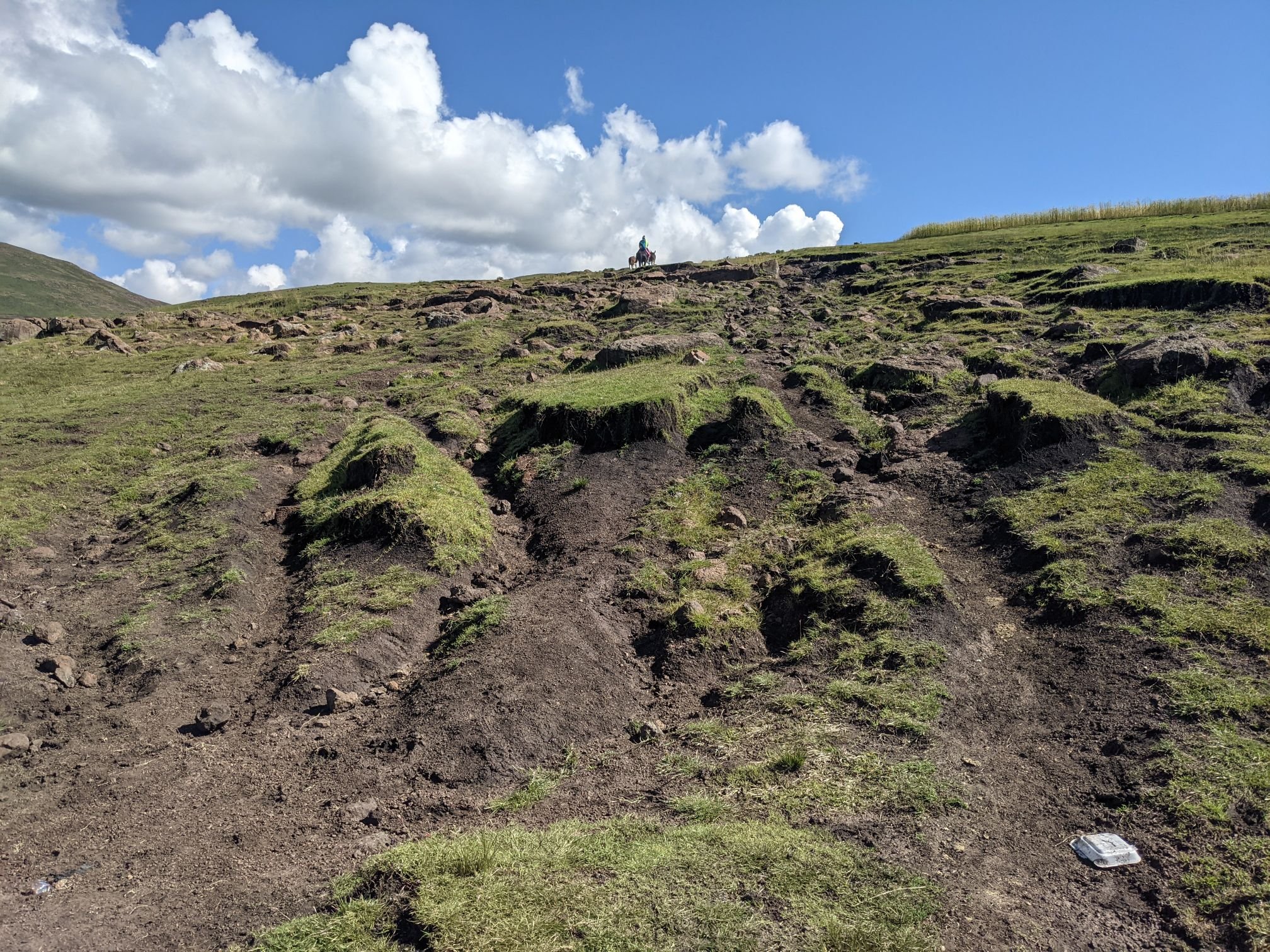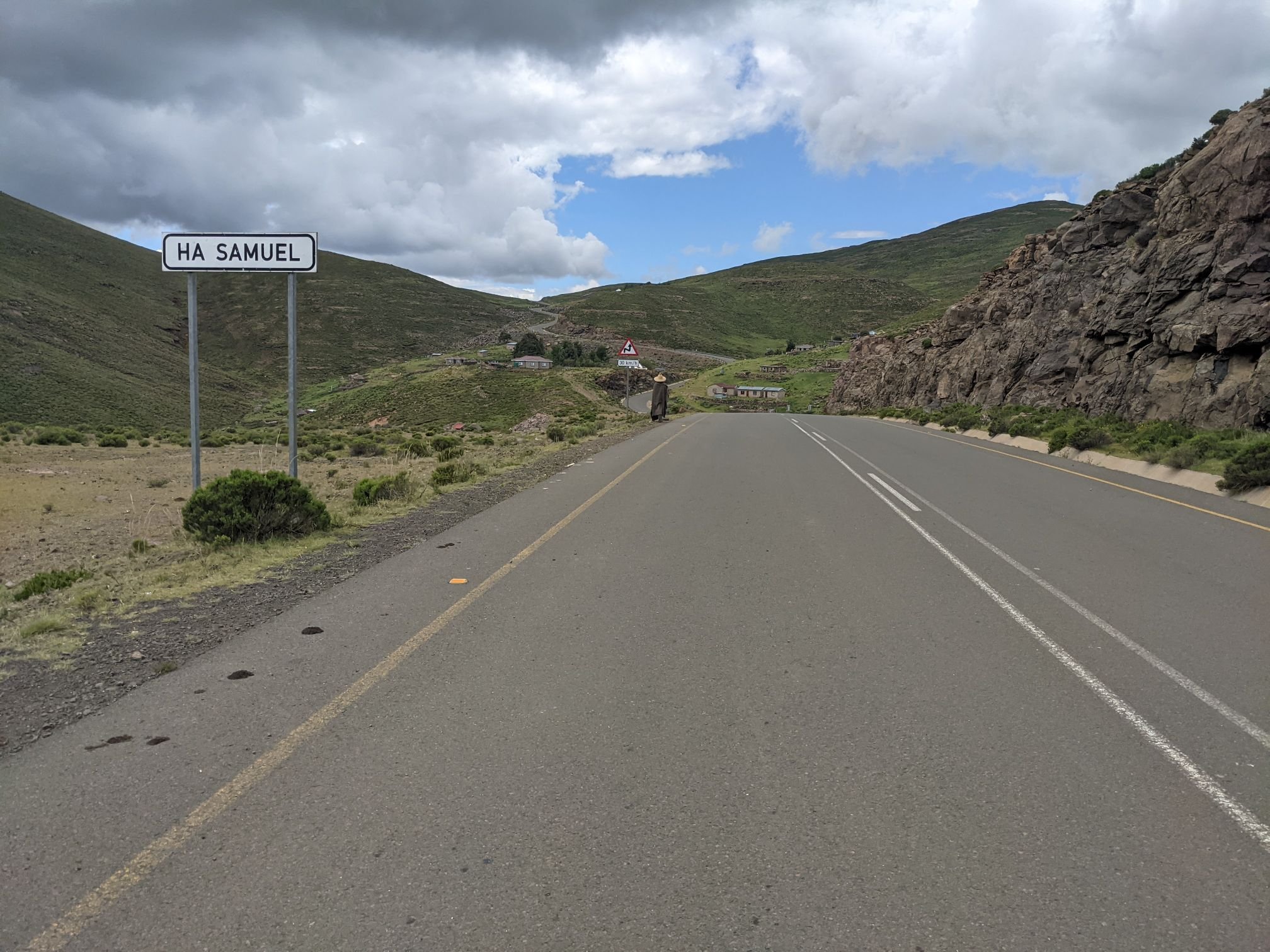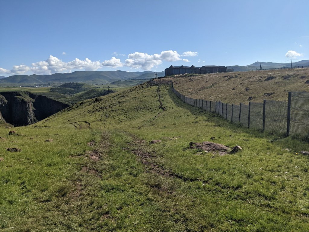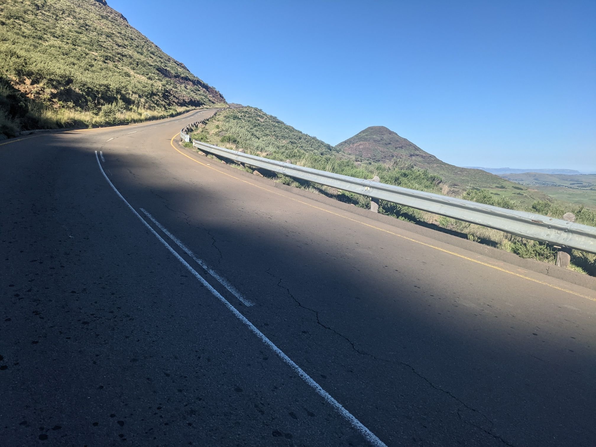 Lesotho is very mountainous, with the highest elevation of any country. To begin with that manifested as constant ups and downs, none more than 100m.