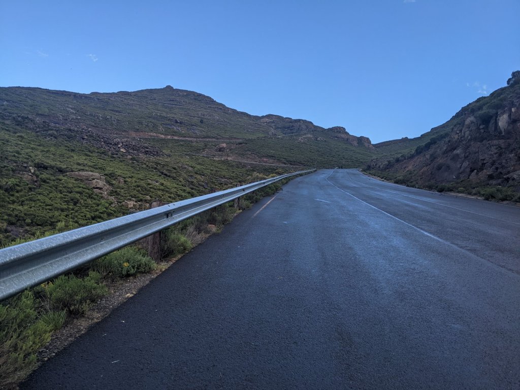 I’d have liked to take some smaller roads across Lesotho but I couldn’t find many suitable ones. There were roads that linked communities this side of the mountain to the main road. There were also roads that link communities on the far side of the mountains to a road on the far side. But there were not many that actually cross the mountains. There’s a route on bikepacking.com, but it links two border crossings that have yet to reopen following covid-related closures. This meant I spent much of my time on paved roads.