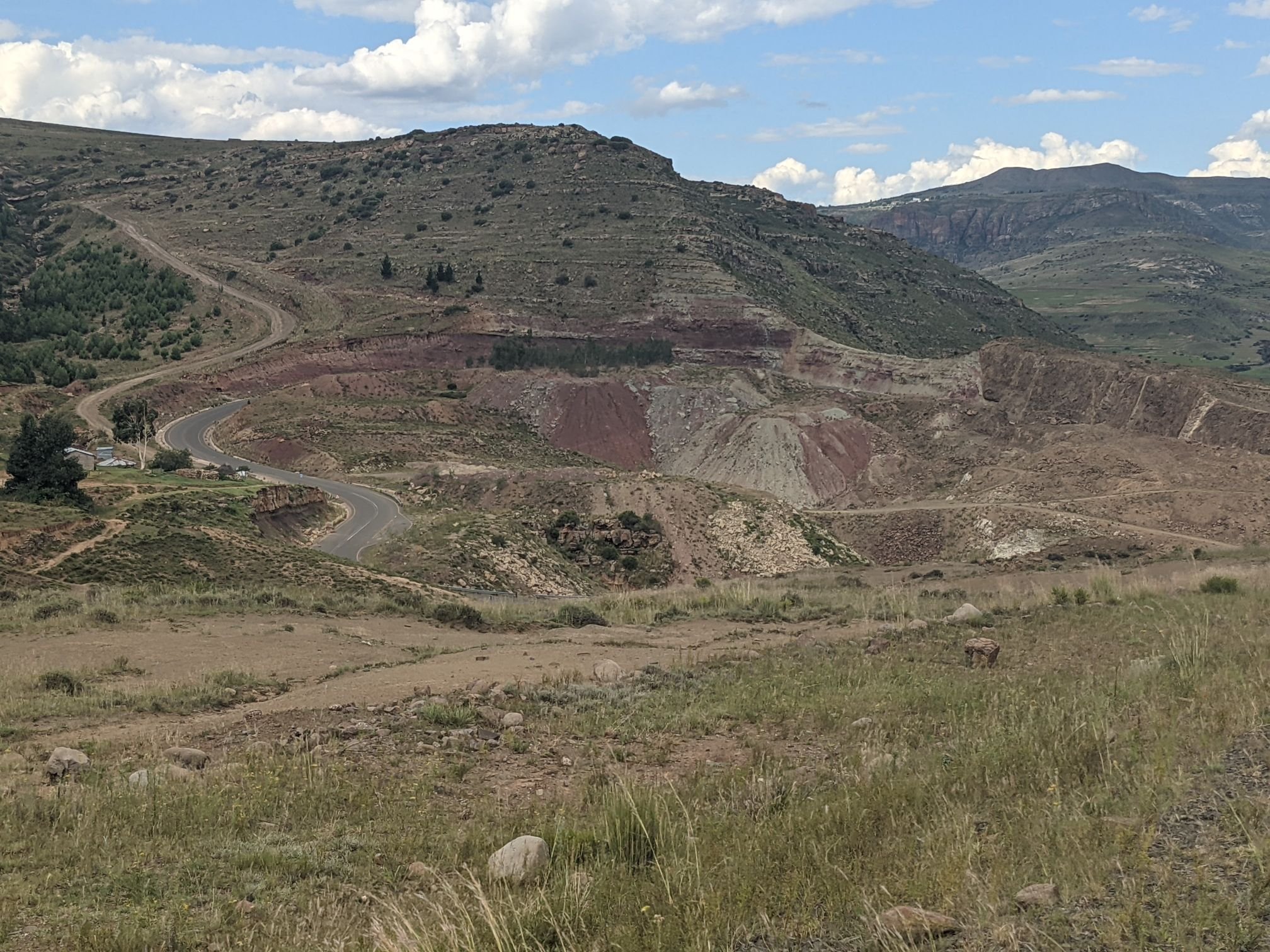 The road climbed back up a few hundred metres before beginning a long descent, ultimately going from about 2600m to 1500m. As is typical for Lesotho, it was not consistent, and the downhill was punctuated by several steep climbs.