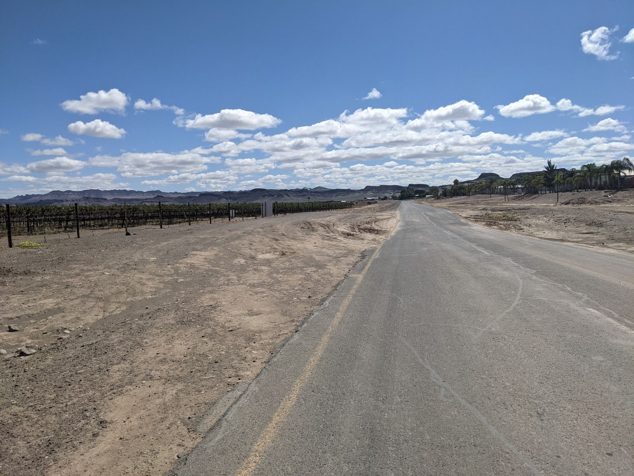 Back at the river, I passed kilometre after kilometre of vineyards. At the center was a village, Aussenkehr. Almost all the villages here were made of straw – with the exception of a concrete shopping complex, complete with a Spar. It wasn’t as well stocked as those in South Africa but it had all I need. Namibia is the first country I’ve been to since the UK, I think, where masks are not worn even in big supermarkets.