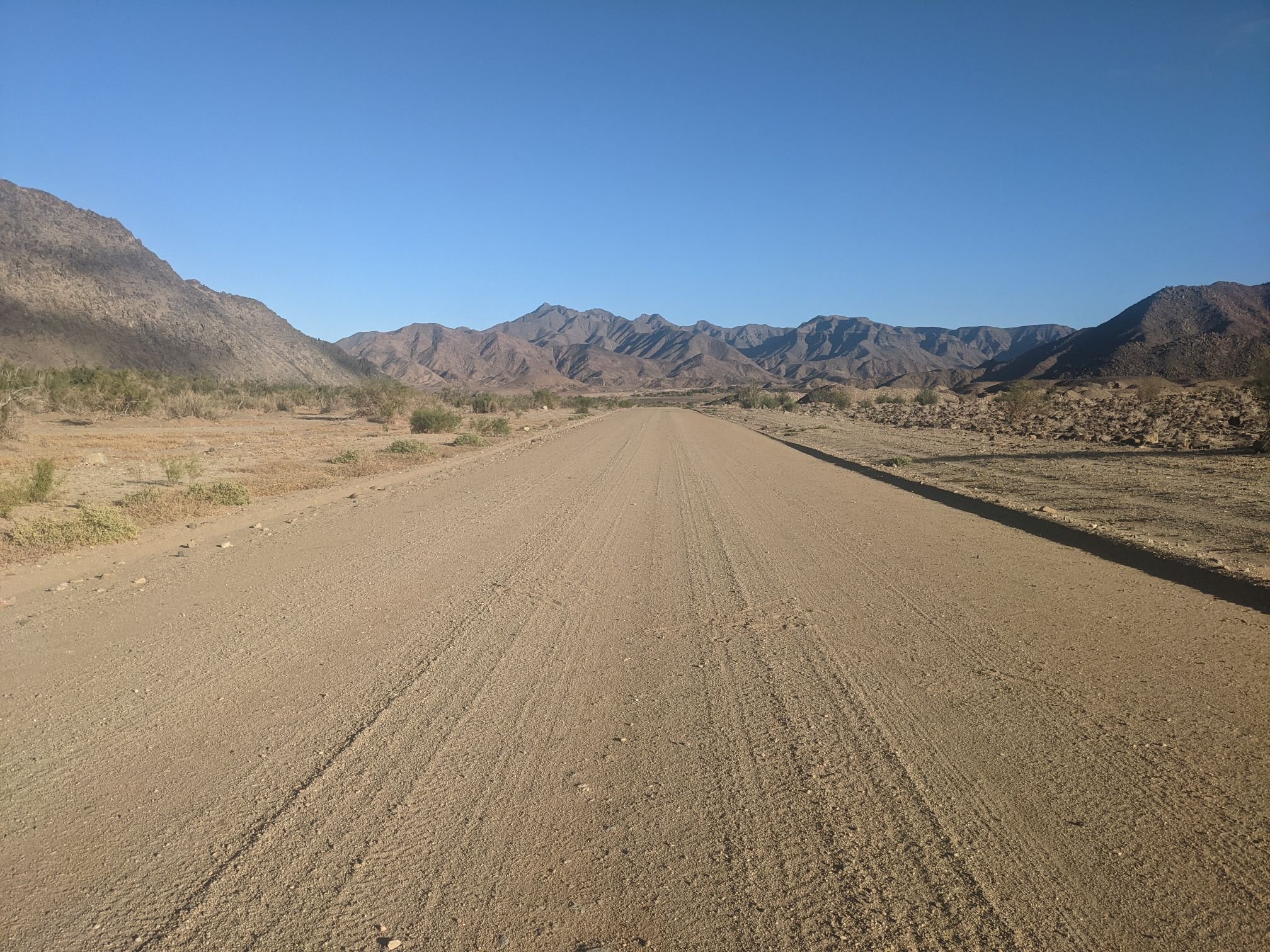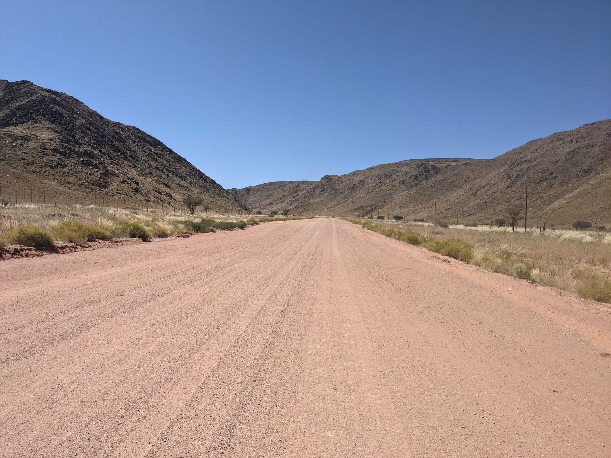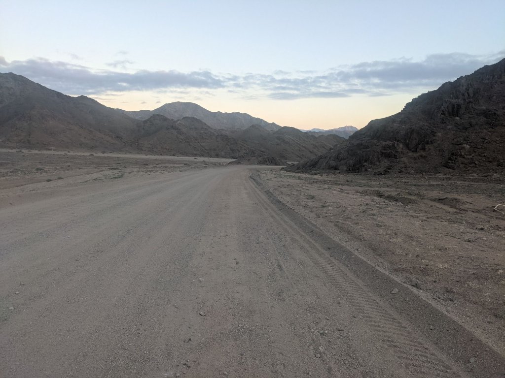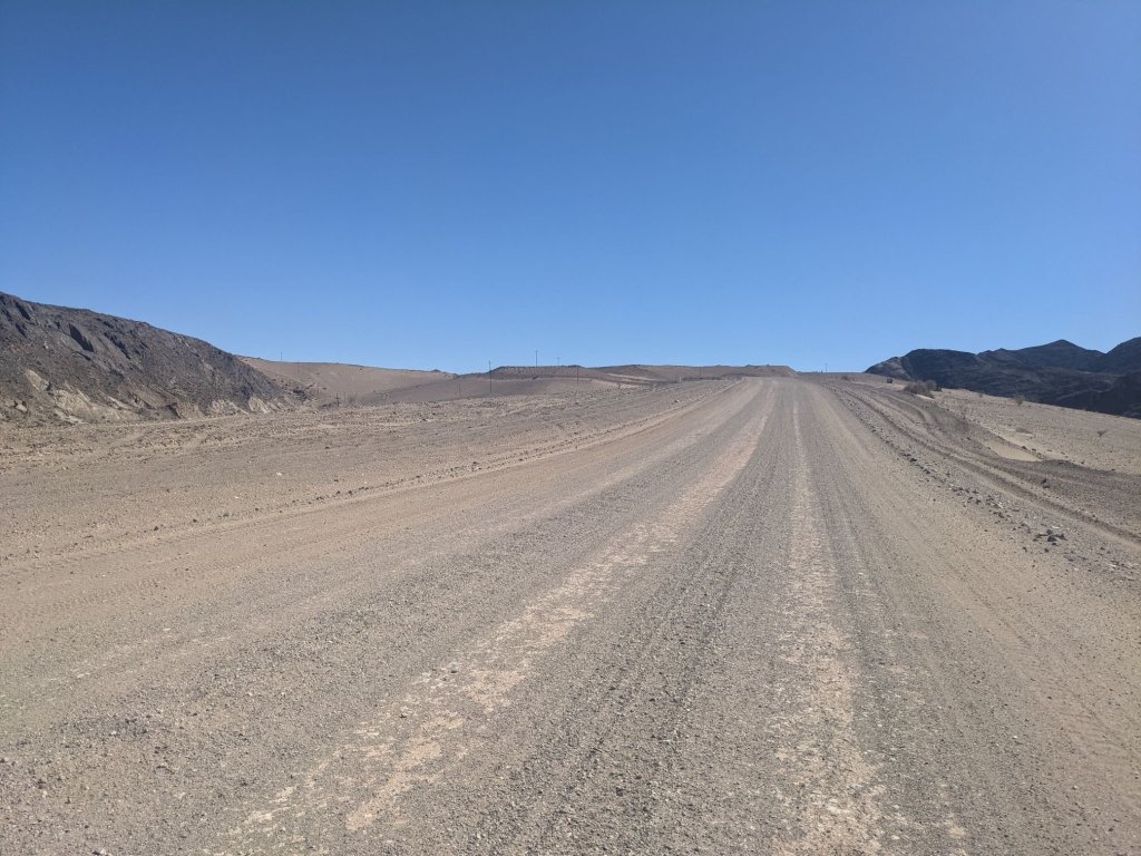 A few kilometres out of Aus I turned off the tarmac road, and onto a sand/gravel one. The distance to the next village was less than the gap before Aus, but I wasn’t sure how bad the road surface would be.