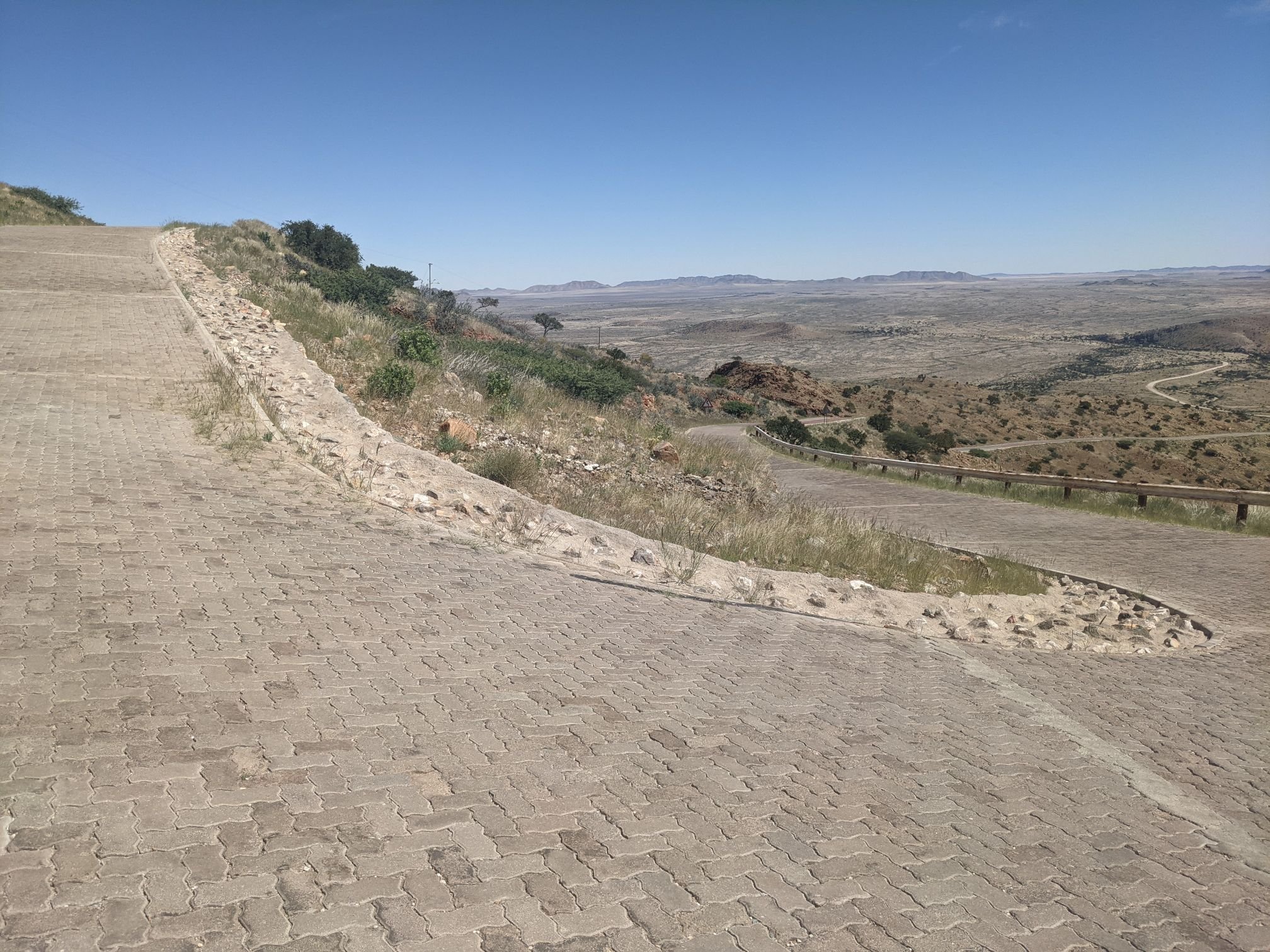 Before beginning the climb, I stopped for a break. I sat in a drain under the road to get out of the sun. I heard a vehicle stop above me, having seen my bike lying down next to the road. The drivers were concerned so I stood up to explain I hadn’t fallen and was just having a rest.