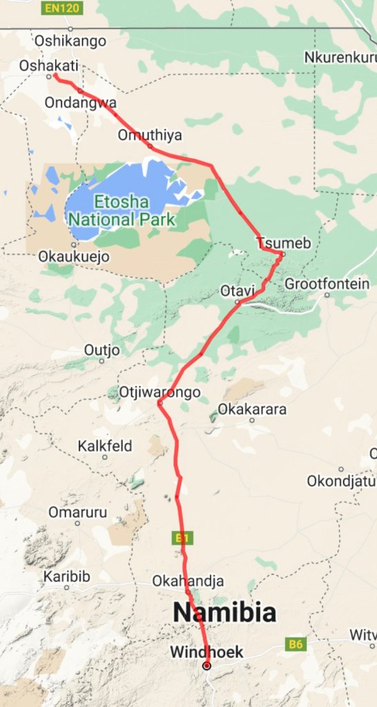 I stopped in the town of Ongwediva, and went to a lab, where I needed to get a PCR test. It was a Sunday, so I was not particularly surprised to find it closed, despite the opening hours printed on the door. I went to a nearby guesthouse that offers camping.