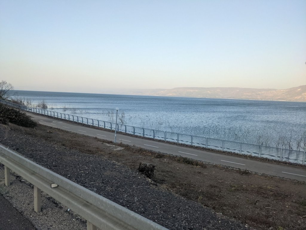 Late in the afternoon I reached the Sea of Galilee. I cycled along it’s western shore for a while.