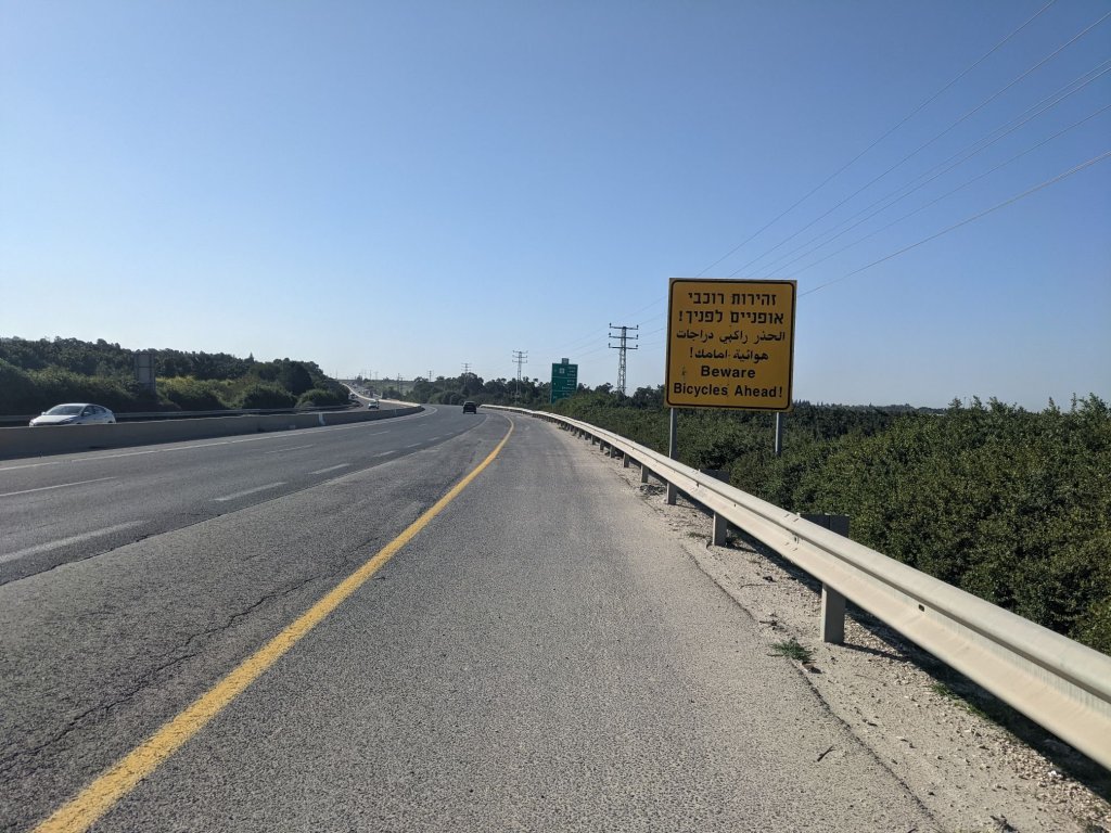 The day was pretty uneventful. I rode along a dual carriageway for much of it; dual carriageway in Israel generally have a decent shoulder. There seems to be a dearth of smaller roads though.