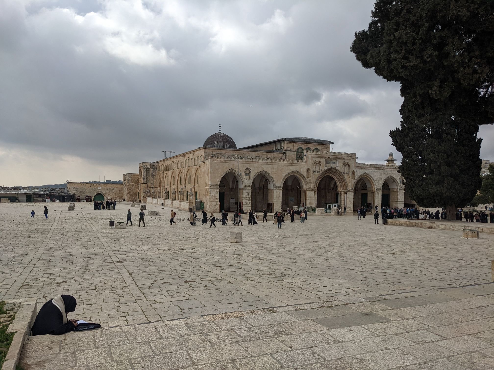 A walkway took me up to the Temple Mount, the location of the First Temple in Jewish Tradition. The area is now forbidden to Jews in case they were to accidentally walk on the unknown location of the Holy of Holies. Now, the Temple Mount is the site of two mosques including the Dome of the Rock, whence Mohammed supposedly entered Heaven to talk to God.